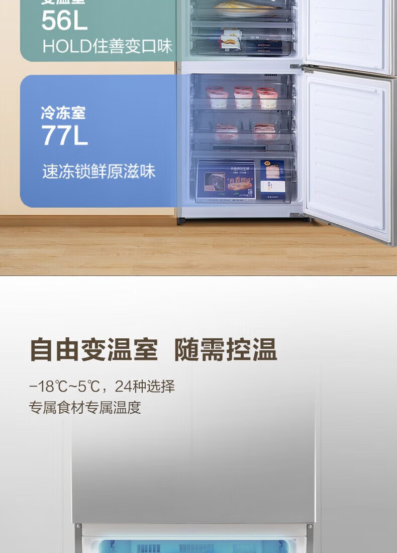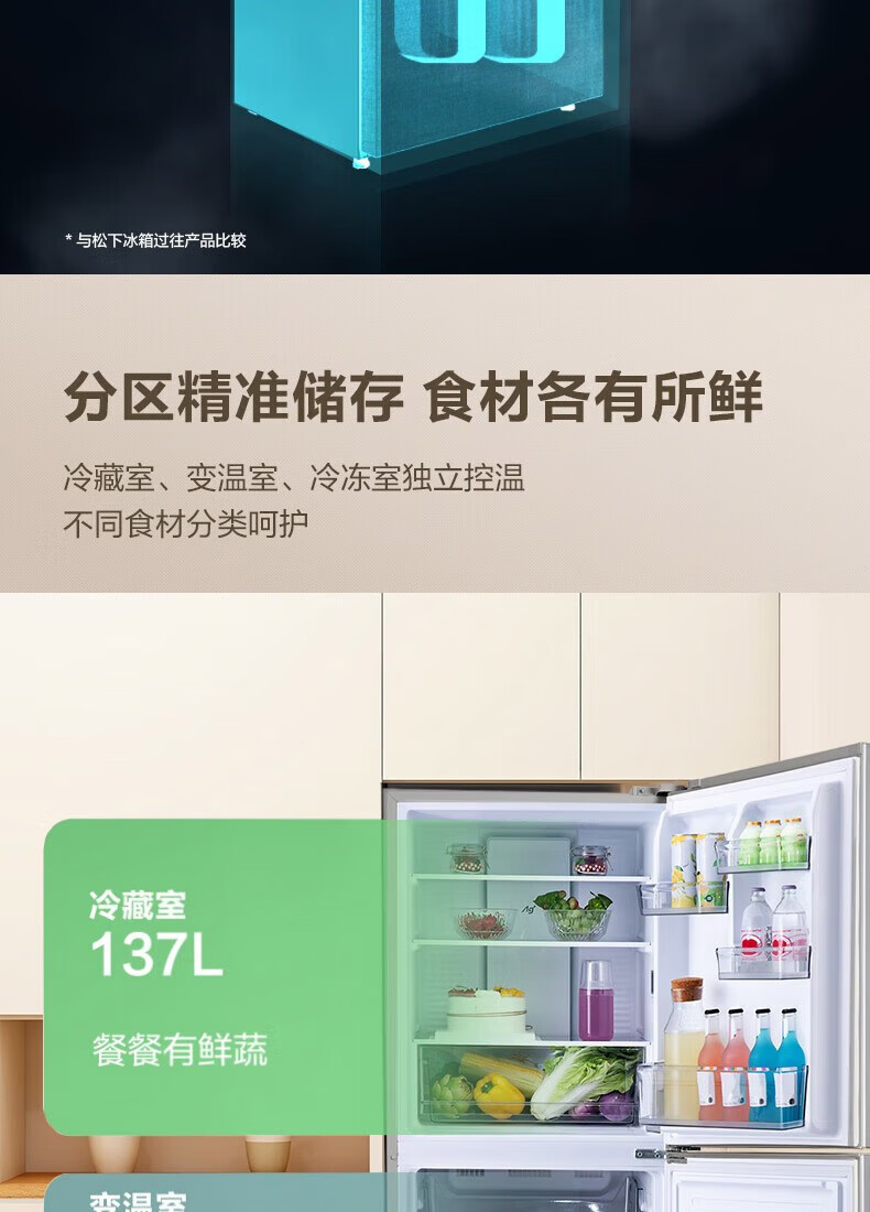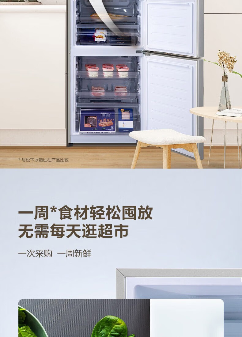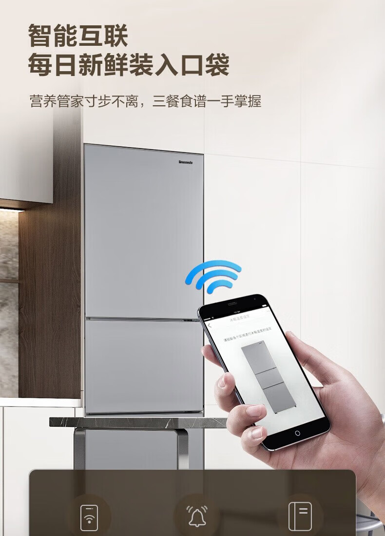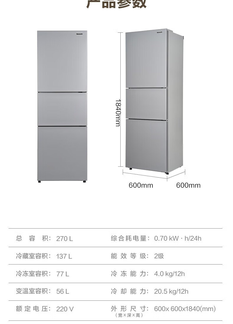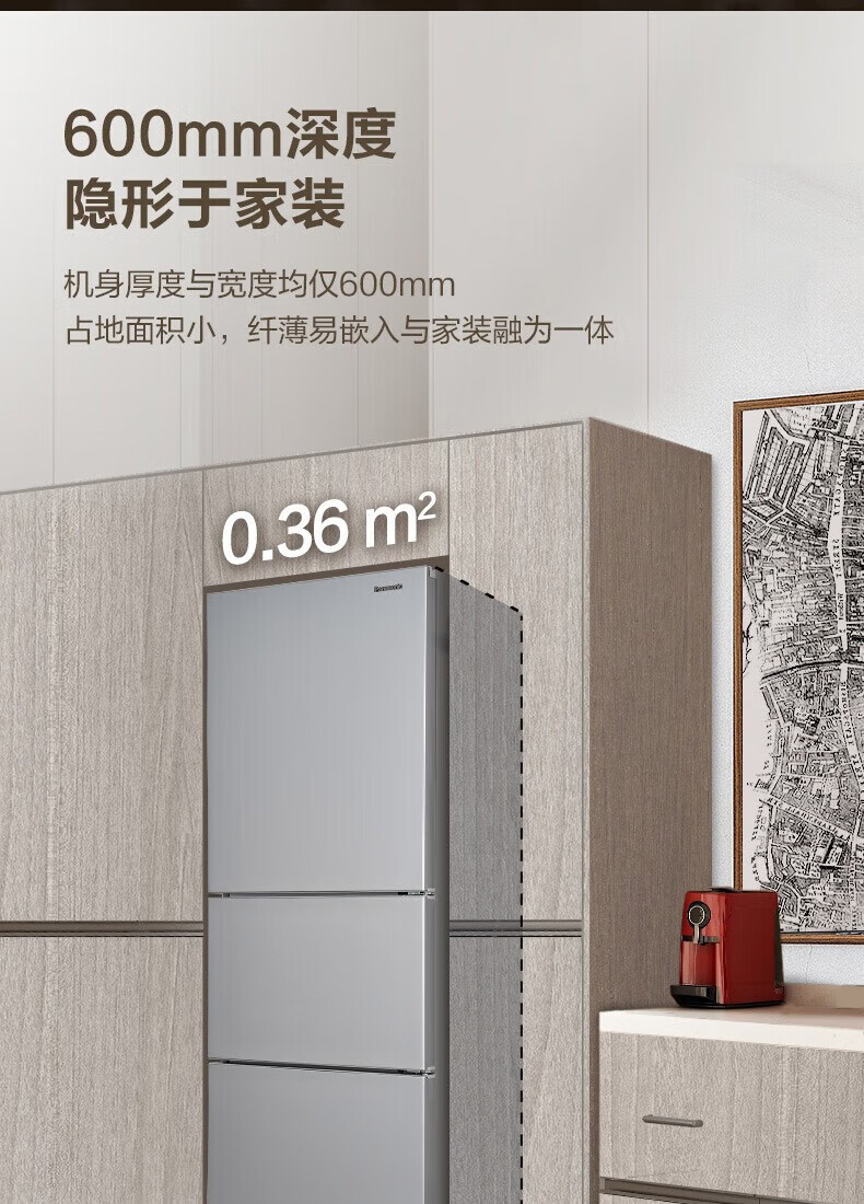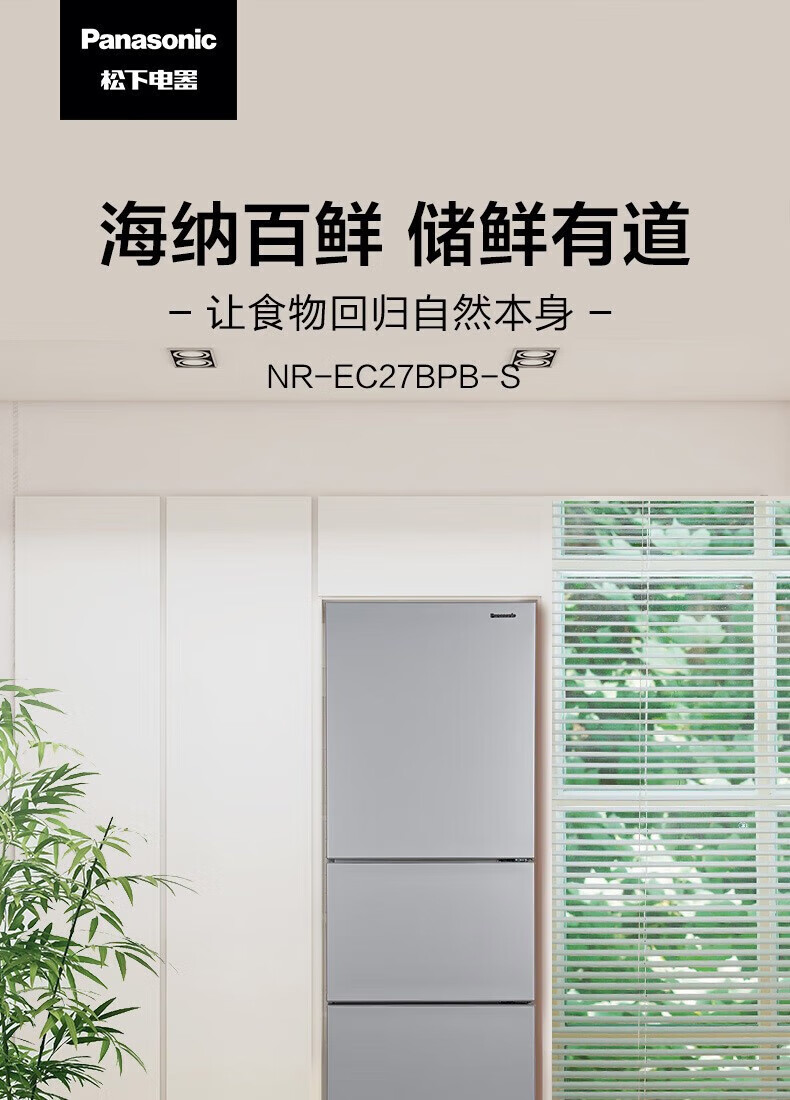 松下冰箱270升三开门超薄60cm风冷无霜宽幅变温电冰箱智能WIFI银离子除菌净味NR-EC27BPB-S