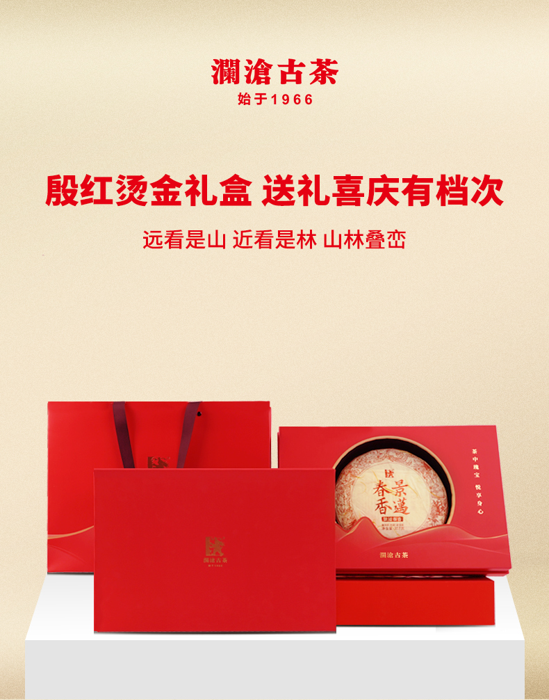 澜沧古茶2019景迈春香普洱茶熟茶熟普云南七子饼古树老树茶叶357g礼盒装(中秋送礼优选)
