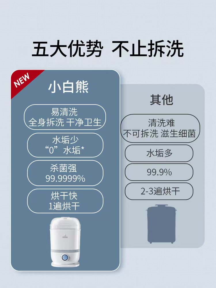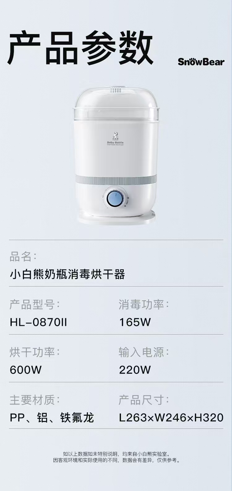 小白熊消毒烘干机HL-0870Ⅱ代奶瓶消毒烘干保管箱玩具消毒蒸汽锅
