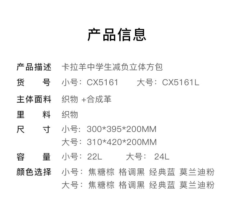 【5-9年级】卡拉羊书包中学生大容量背包初中生双肩包CX5161