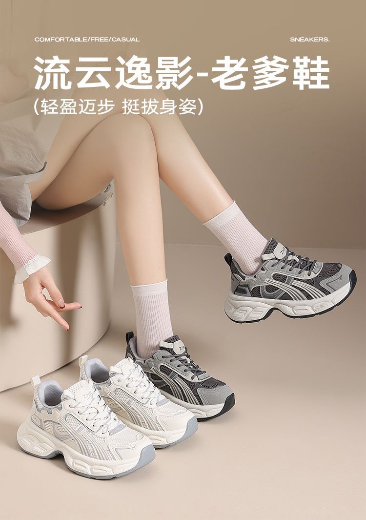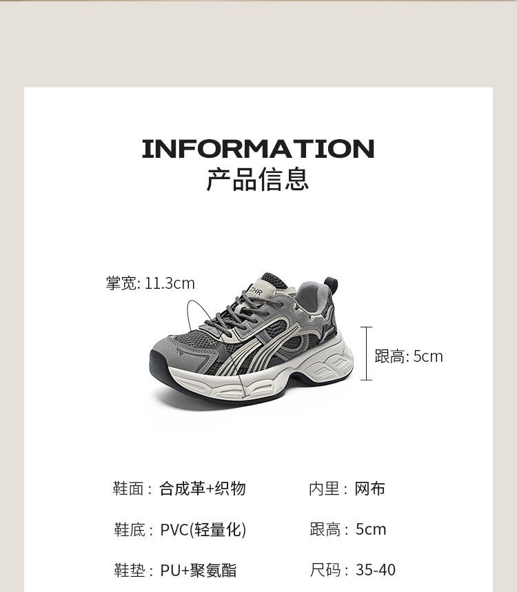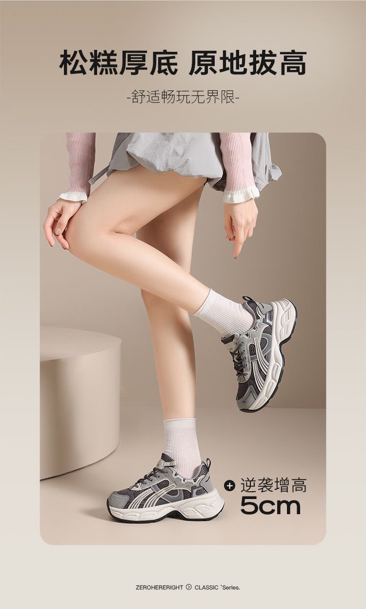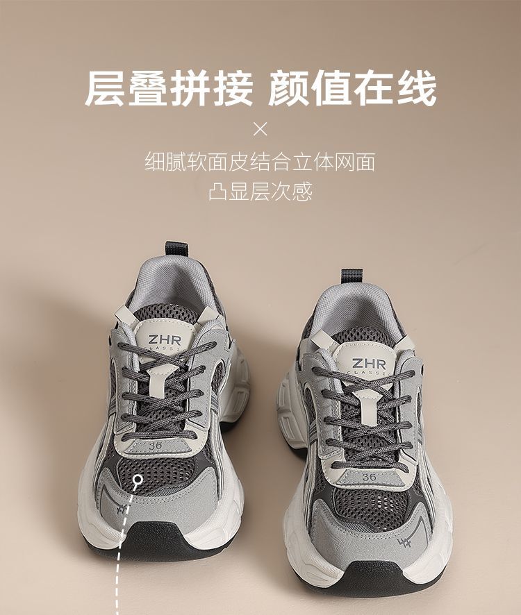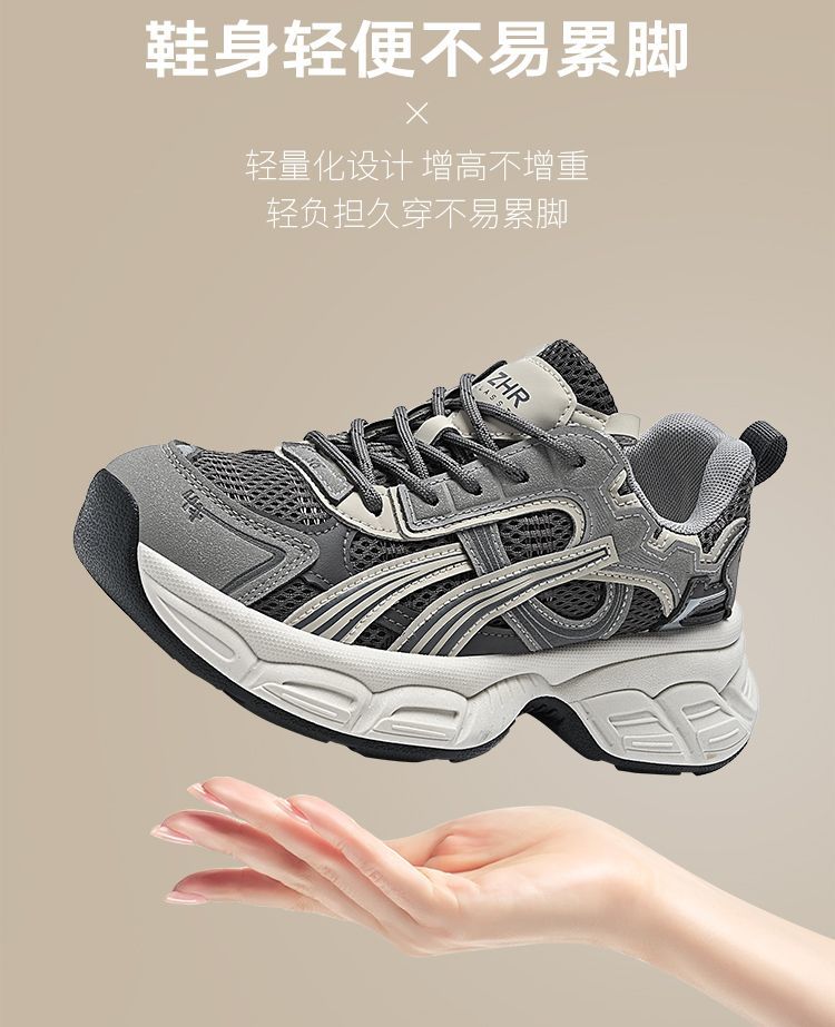 ZHR则则5CM增高厚底老爹鞋女春秋款透气网面老爹鞋百搭运动休闲鞋