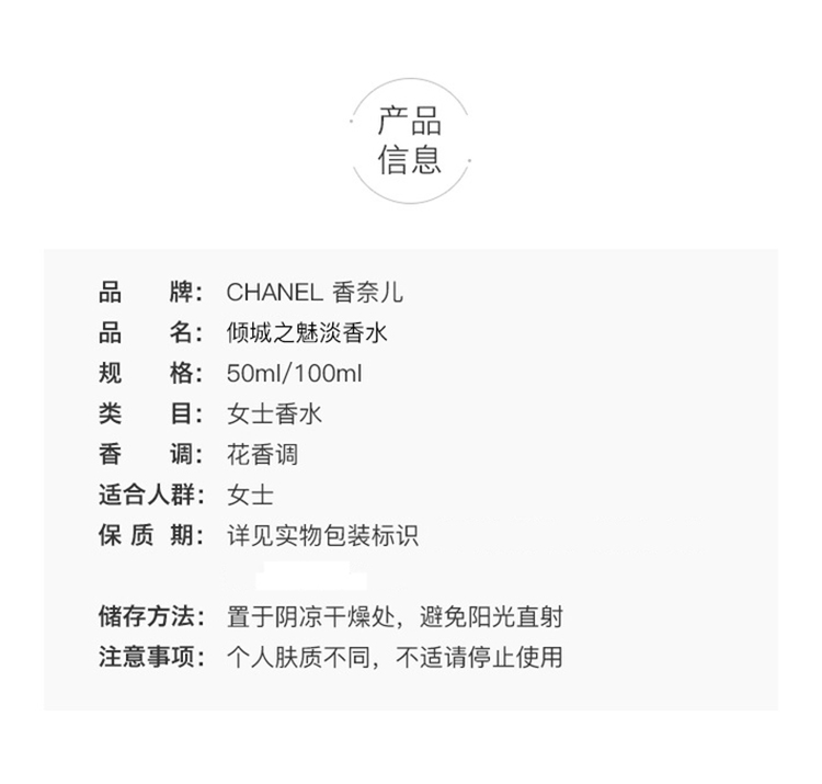 Chanel香奈儿倾城之魅女士香水 EDT淡香水50-100ml