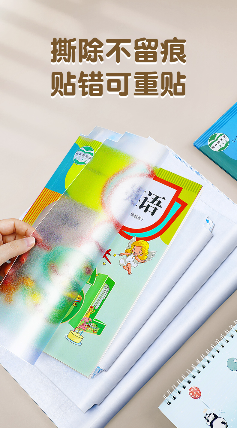 【云优选】猫太子书皮书套小学生书皮纸自粘透明磨砂小学包书皮一年级三二年级下册四五课本书本保护套书壳包书膜包书纸