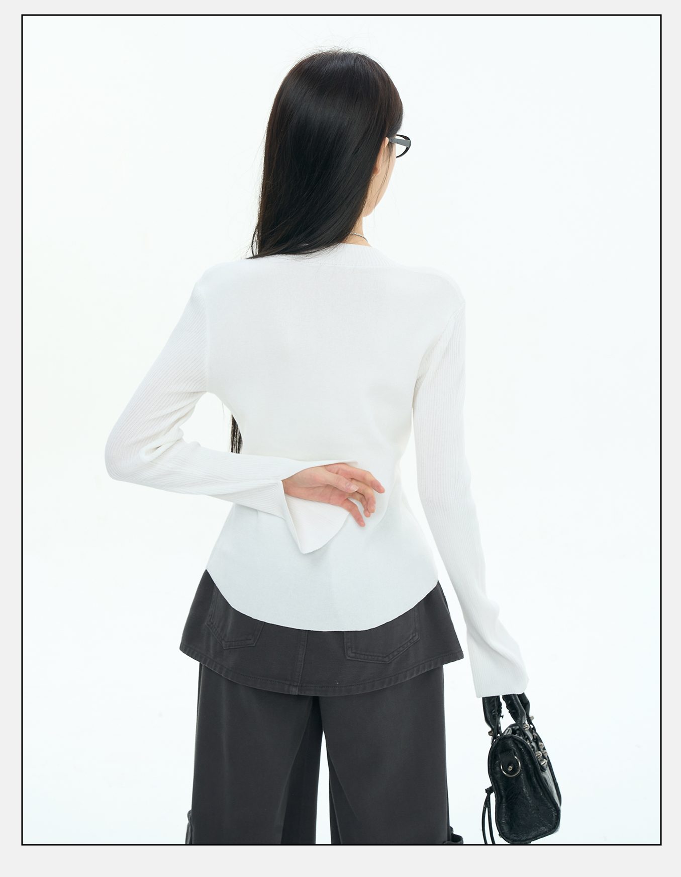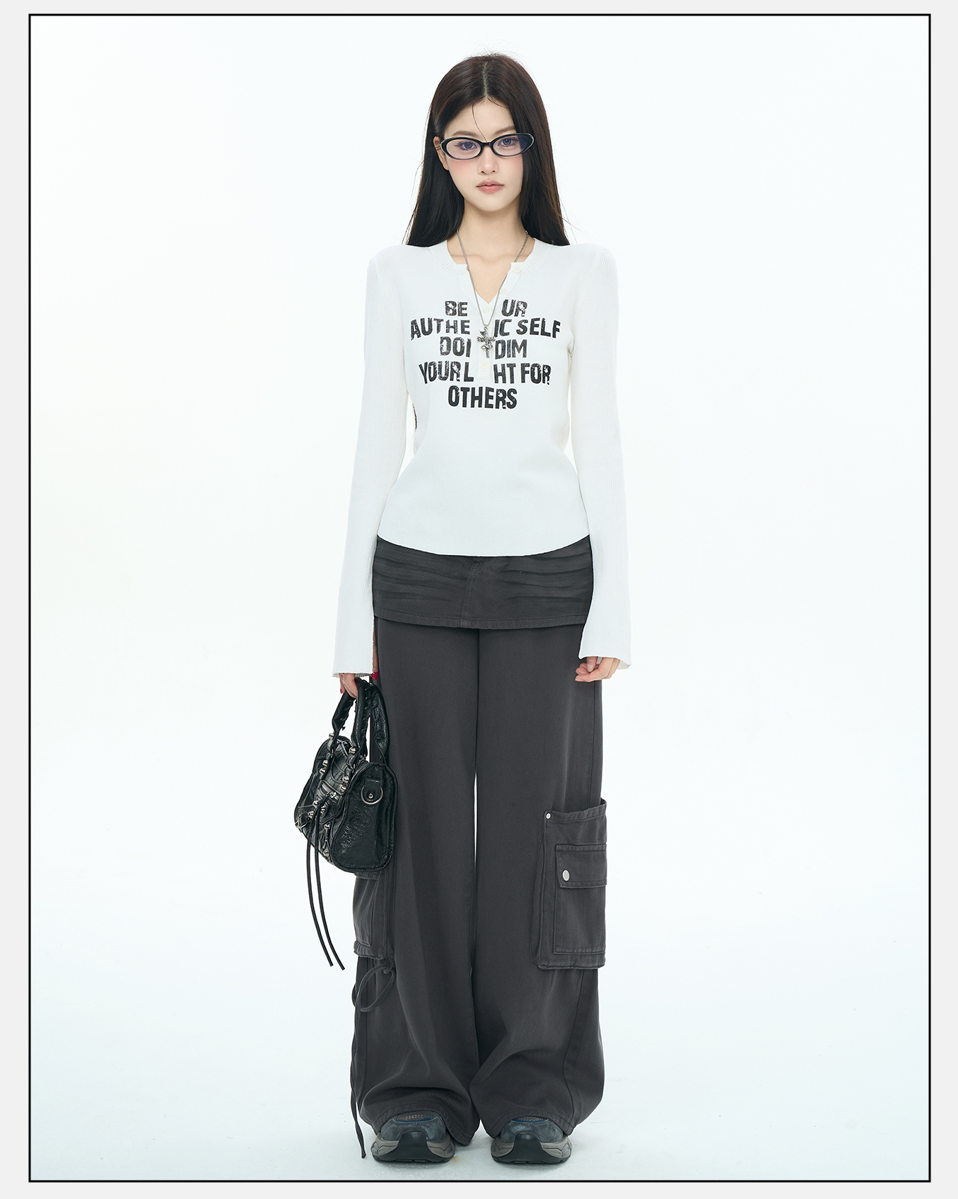 P&X设计师女装2025秋季字母长袖毛衣印花毛针织衫825331102 白色