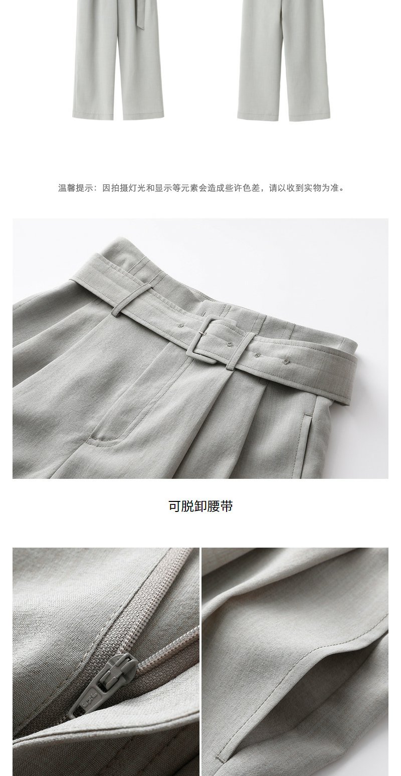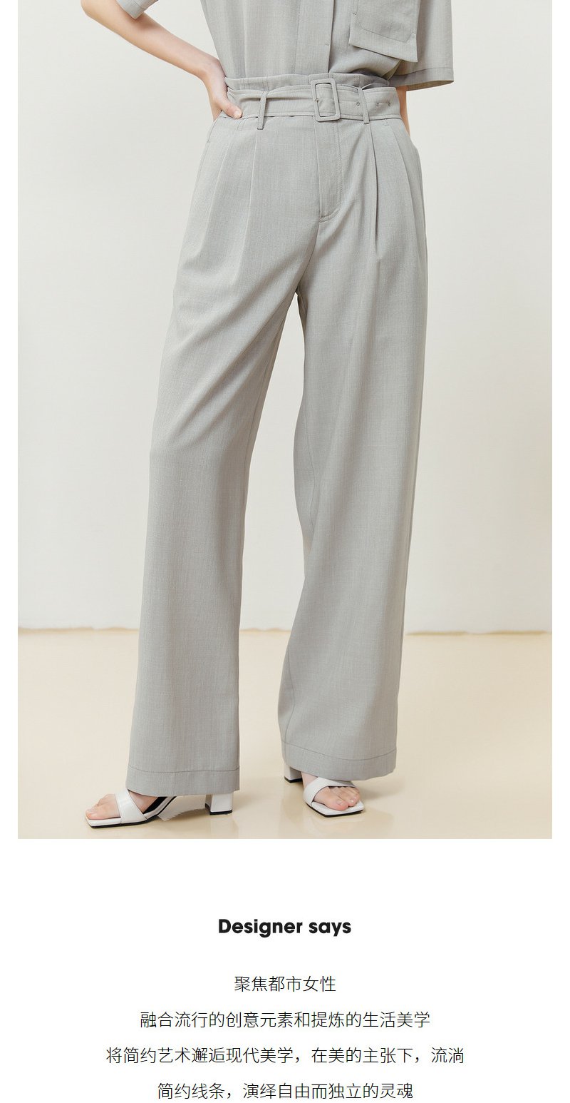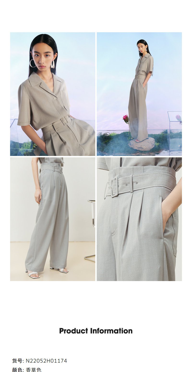 NEELLY纳俪商场同款西装休闲裤女立体打褶收腰系带阔腿直筒裤百搭N22052H01174