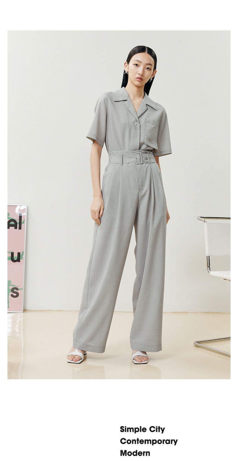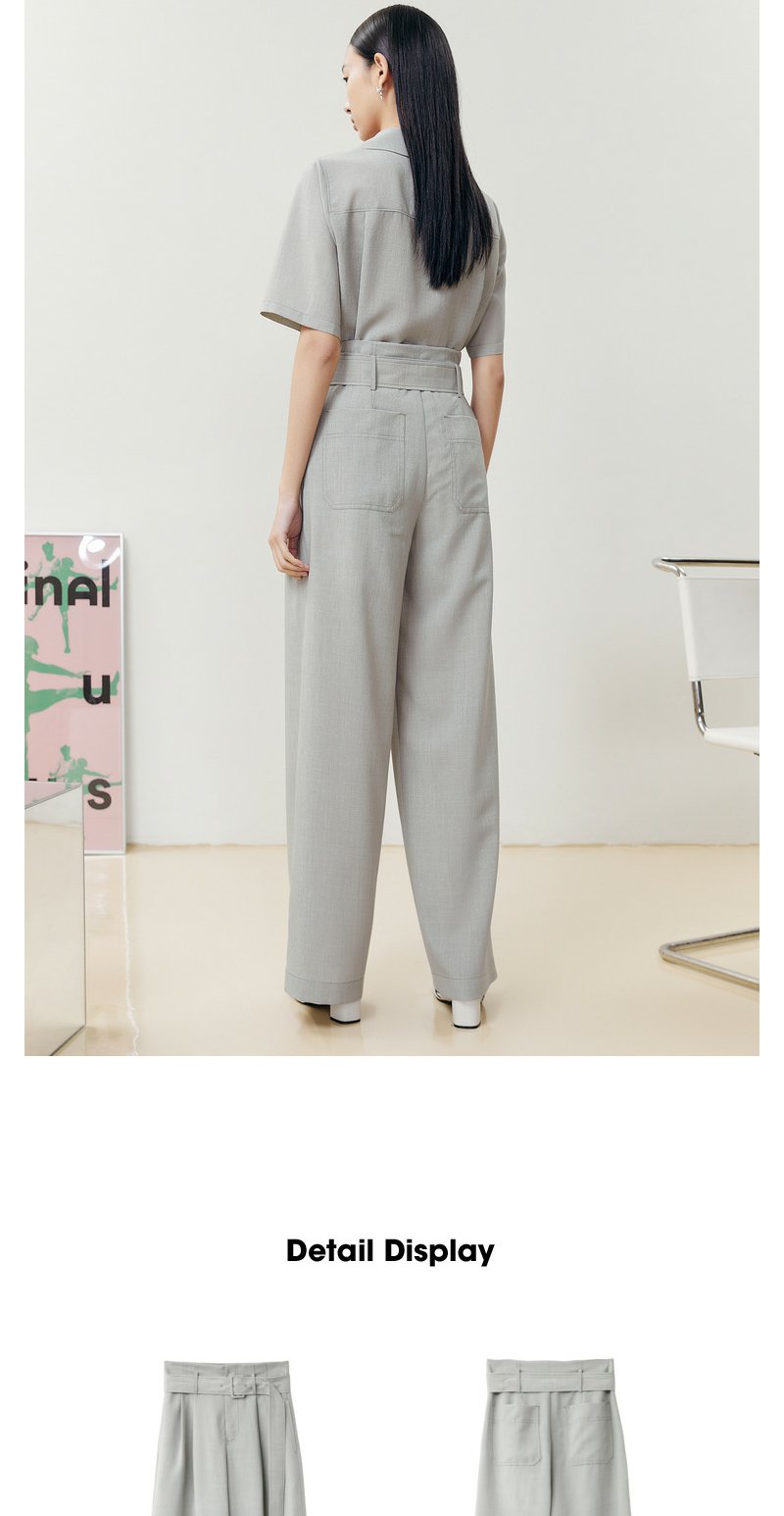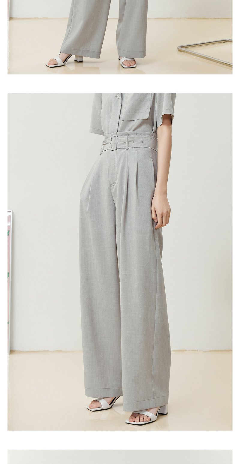 NEELLY纳俪商场同款西装休闲裤女立体打褶收腰系带阔腿直筒裤百搭N22052H01174