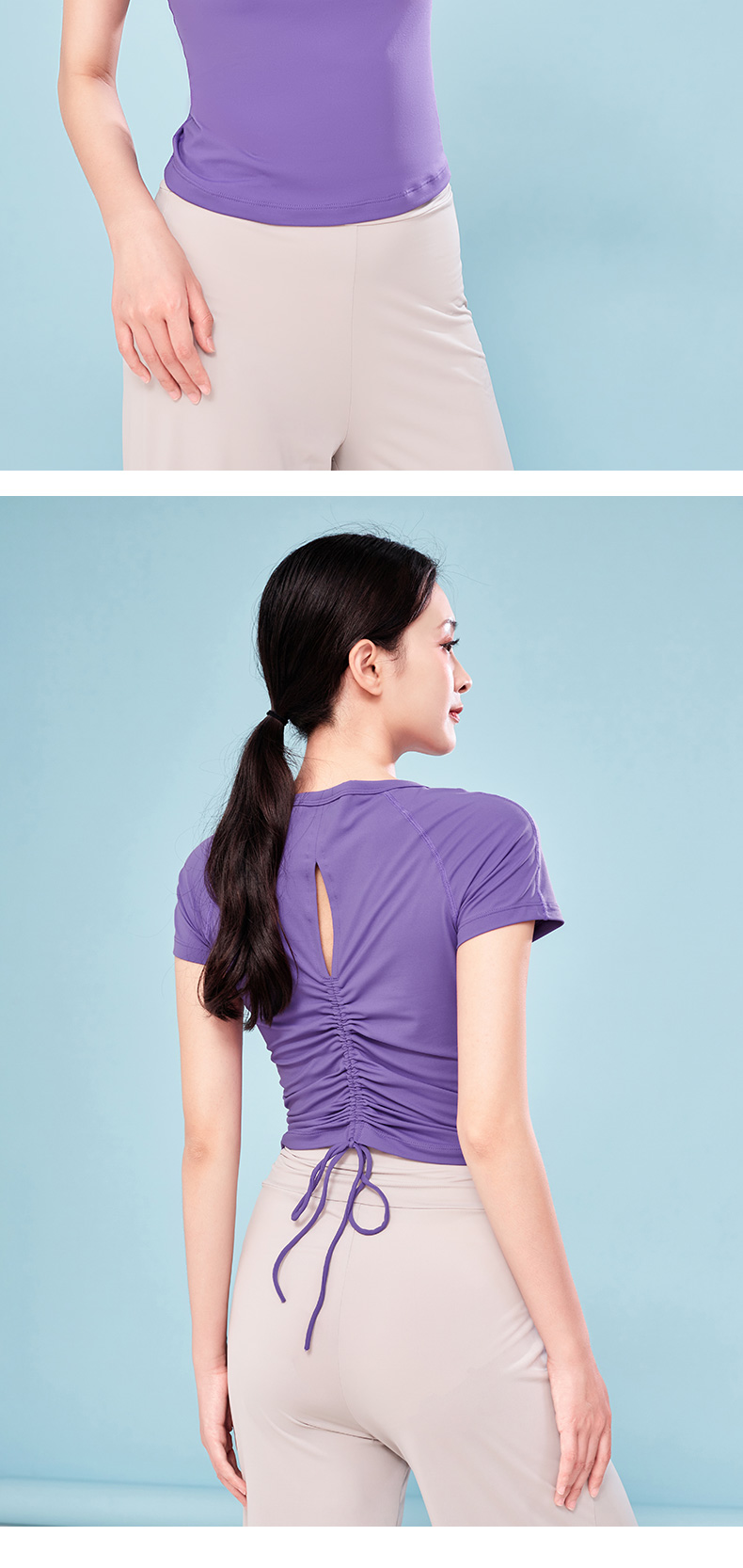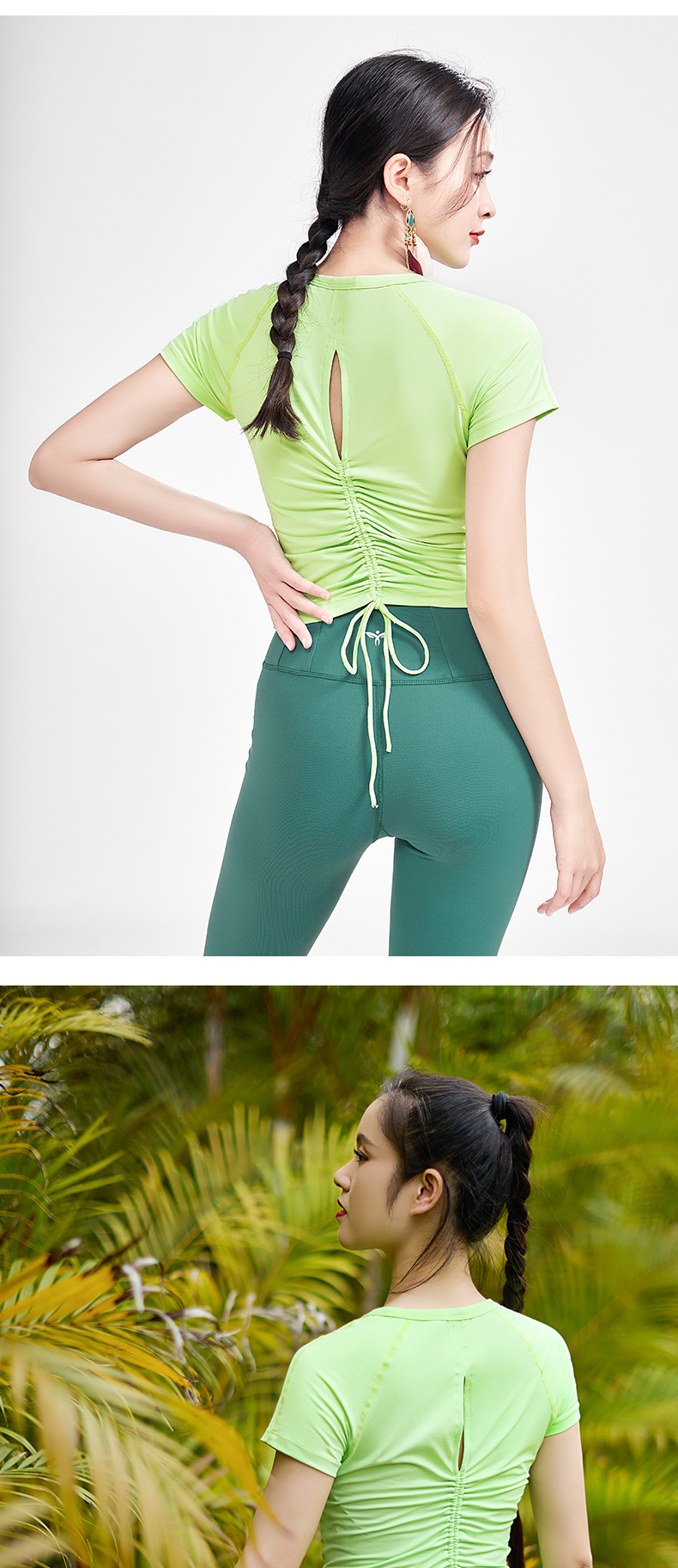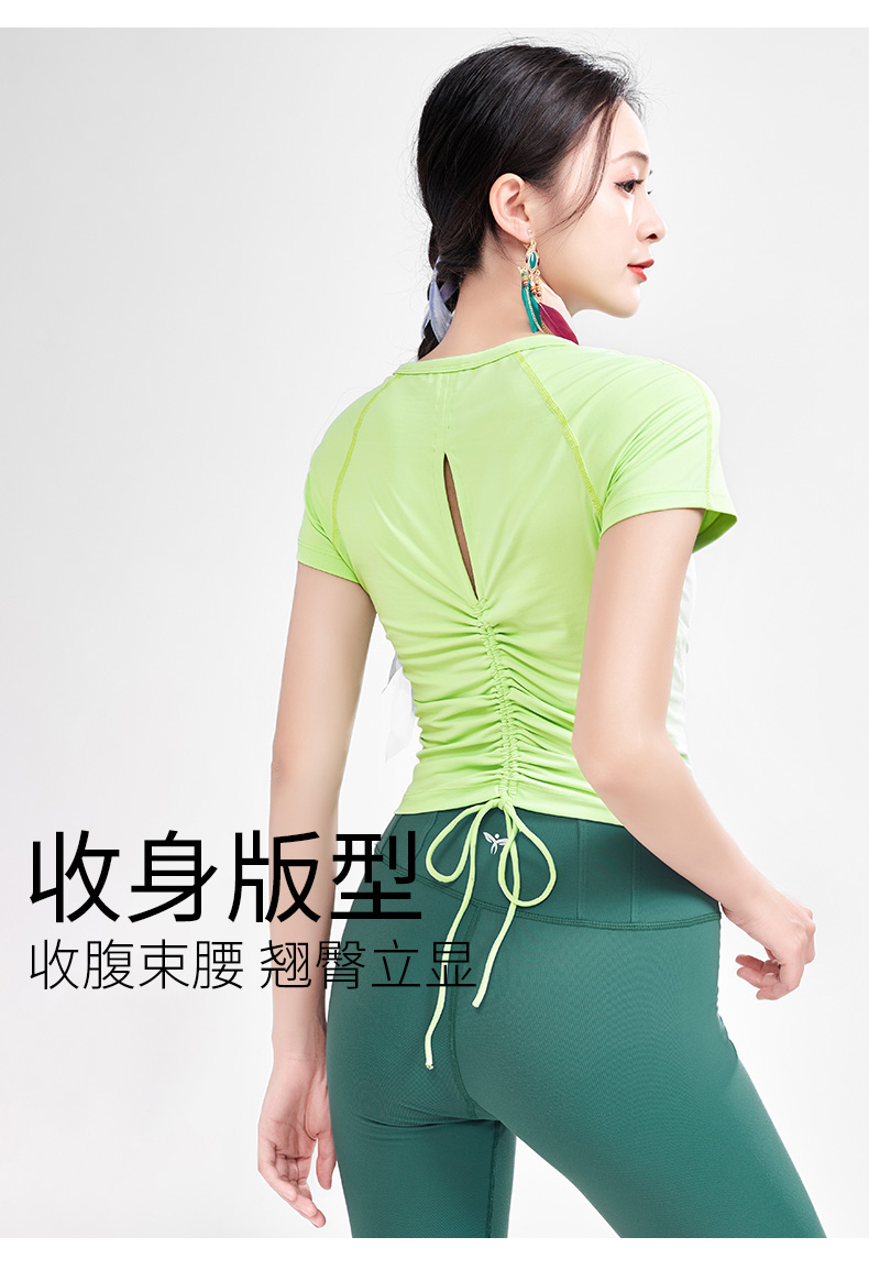 悠妍抽绳瑜伽服短袖T恤DX24510 抽绳美背