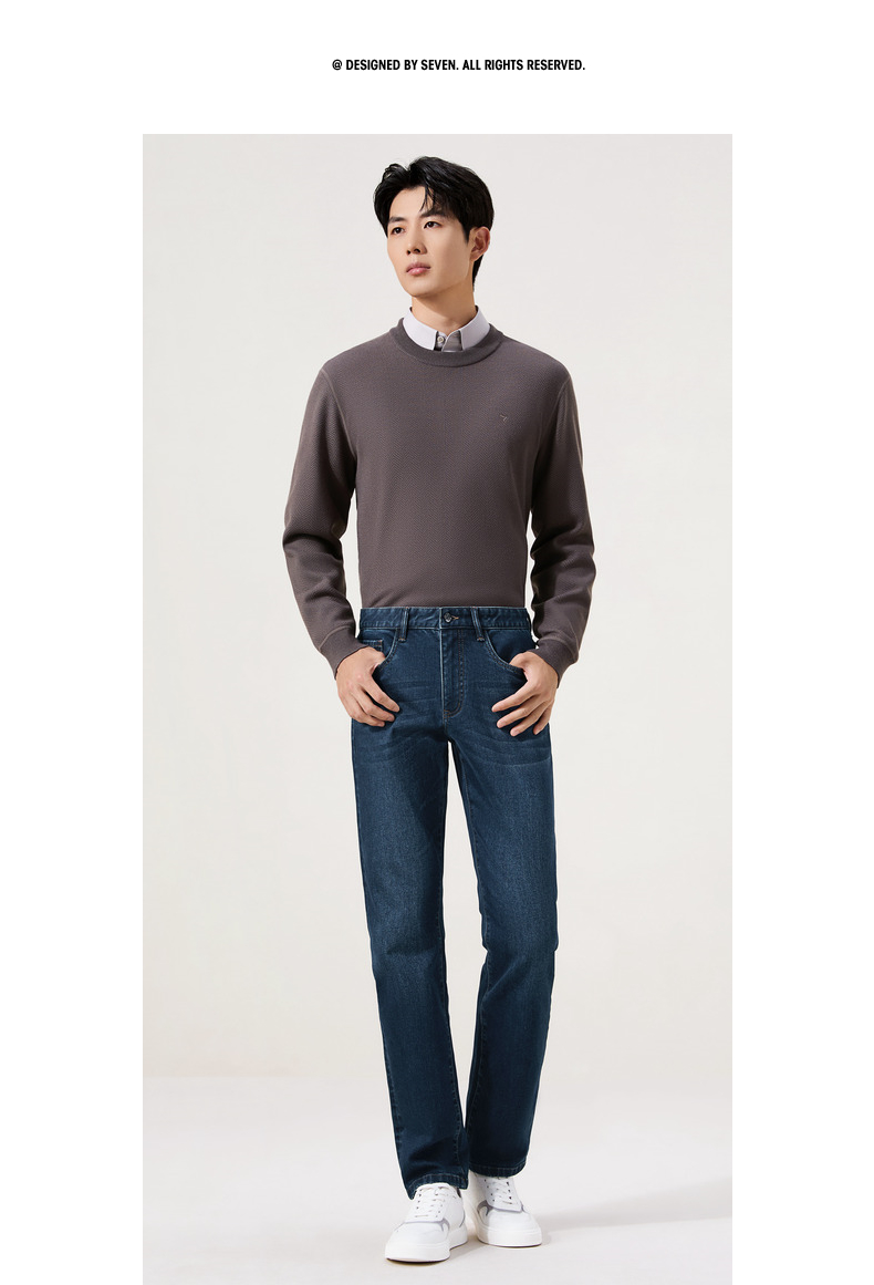 【莱赛尔】柒牌直筒牛仔长裤2025秋冬弹力保暖耐磨热熔岩休闲长裤129H71680