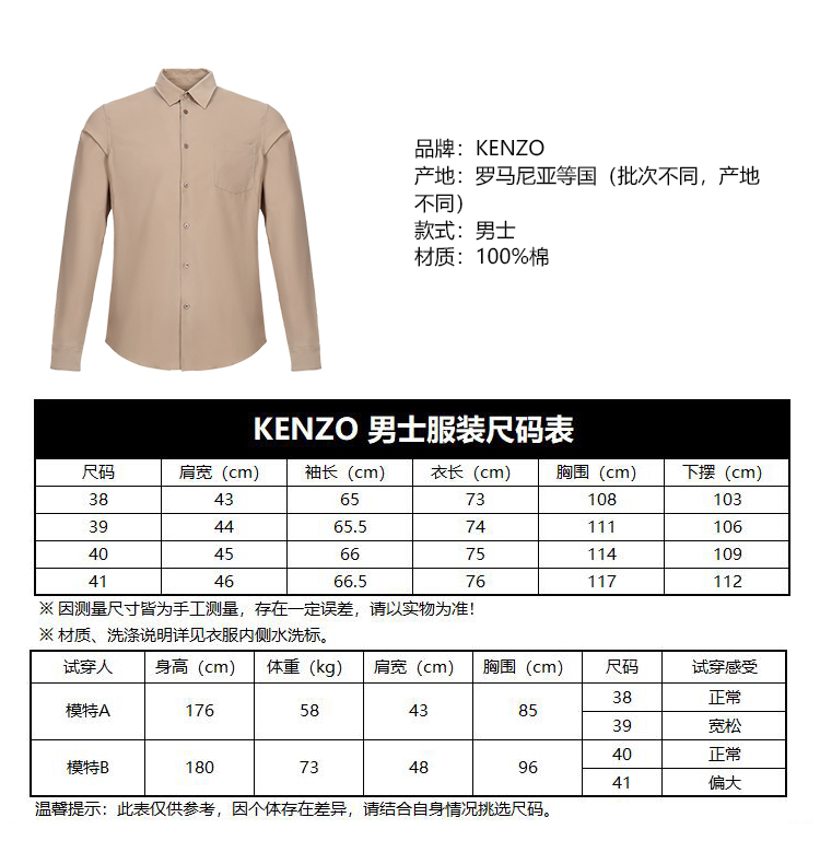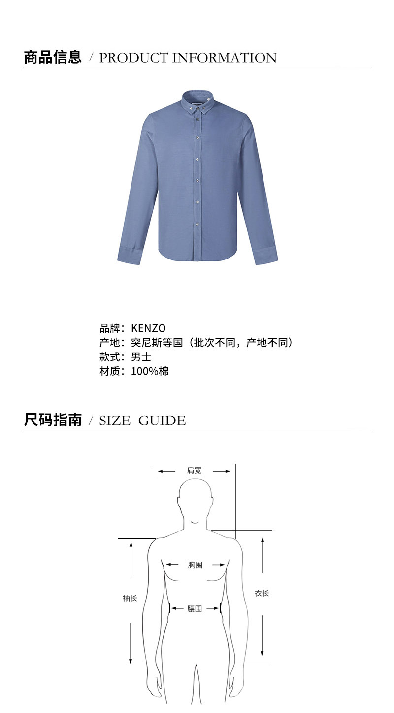 KENZO/高田贤三 男士棉质长袖衬衫 5CH200 9CX