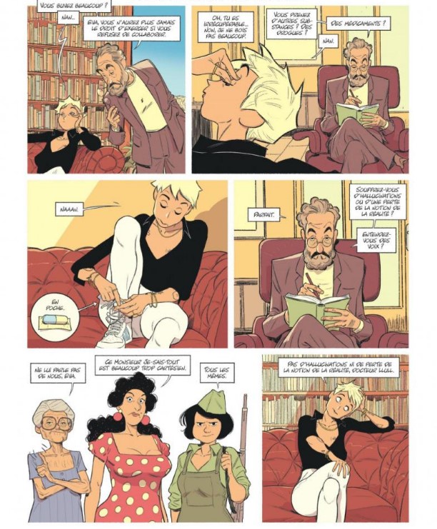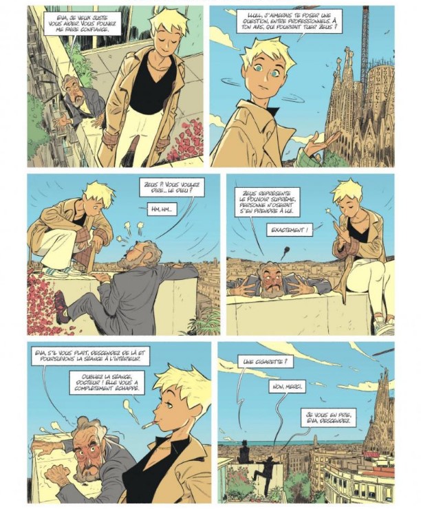 Barcelone, de nos jours. Eva Rojas, une jeune et brillante psychiatre, rechigne à répondre aux questions du Dr Llull. Pourtant, elle n'a d'autre choix que de collaborer pour espérer récupérer sa licence et exercer à nouveau son métier. Il y a quelques jours, Eva a été appelée en renfort par l'une de ses patientes, Pénélope, pour l'accompagner, en tant que personne de confiance, durant la lecture du testament de sa grand-mère. Si cette dernière est toujours vivante, cette réunion familiale n'en demeurera pas moins éprouvante. À son arrivée à Can Monturós, l'excentrique psy perçoit rapidement les lourds secrets qui pèsent sur le domaine viticole. Et pour cause : percer les gens à jour, c'est son fonds de commerce. Les Monturós, qui ont fait fortune grâce à leurs vignes pendant la période franquiste, semblent dissimuler quelques secrets inavouables... Alors qu'elle séjourne au domaine, un membre de la famille est assassiné. Et les regards inquisiteurs ont tôt fait de se tourner vers Eva, qui mènera l'enquête pour tenter de prouver son innocence. Après le poétique Malgré tout, Jordi Lafebre nous livre, à coups de récits enchâssés et de personnalités hautes en couleurs, un roman graphique lumineux, au rythme résolument moderne et au ton empreint d'humour. Un récit entre la comédie et le polar catalan.