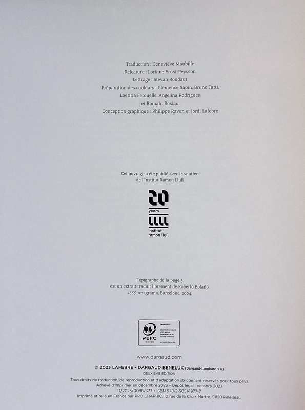 Jordi Lafebre 是一位活跃于法国-比利时市场的西班牙插画家和漫画艺术家。 拉菲布尔出生于巴塞罗那。 在巴塞罗那大学学习绘画并在巴塞罗那 Joso 学校学习漫画后,他于 2001 年开始在西班牙担任广告和各种杂志(包括 Nobanda、Penthouse Comix 和 Wet Comix)的插画师。 在儿童杂志 Mister K 中,他出版了由托尼·丰特 (Toni Font) 撰写的《朱迪世界》(El mundo de Judy)。 他与居住在西班牙的比利时编剧齐德鲁的会面将具有决定性意义:乔迪·拉菲布尔与他一起创作了一些短篇小说,发表在《斯皮鲁杂志》上,这些短篇小说将收录在两张集体专辑《从未打过网球的老太太》和《从不打网球的老太太》中。在从事作家职业的同时,乔迪·拉菲布雷 (Jordi Lafebre) 也是巴塞罗那 Joso 学校的一名教师。