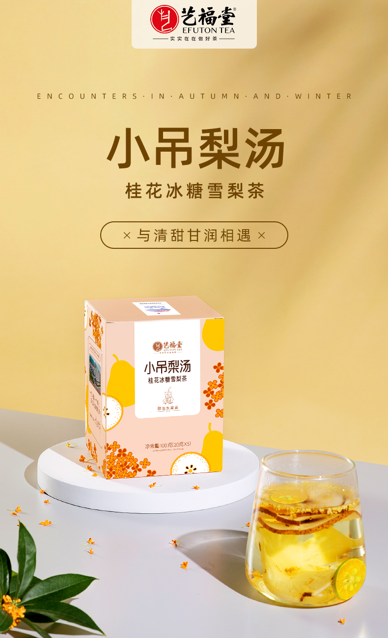 【买1送1】艺福堂 小吊梨汤金桔桂花冰糖雪梨茶 泡水花果茶 100g/盒