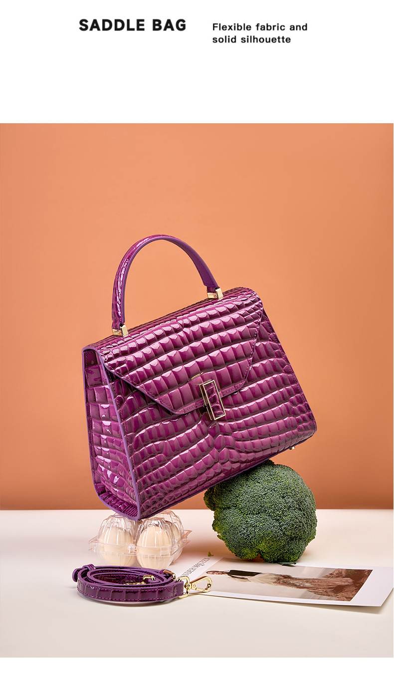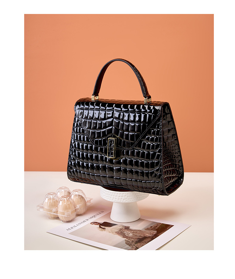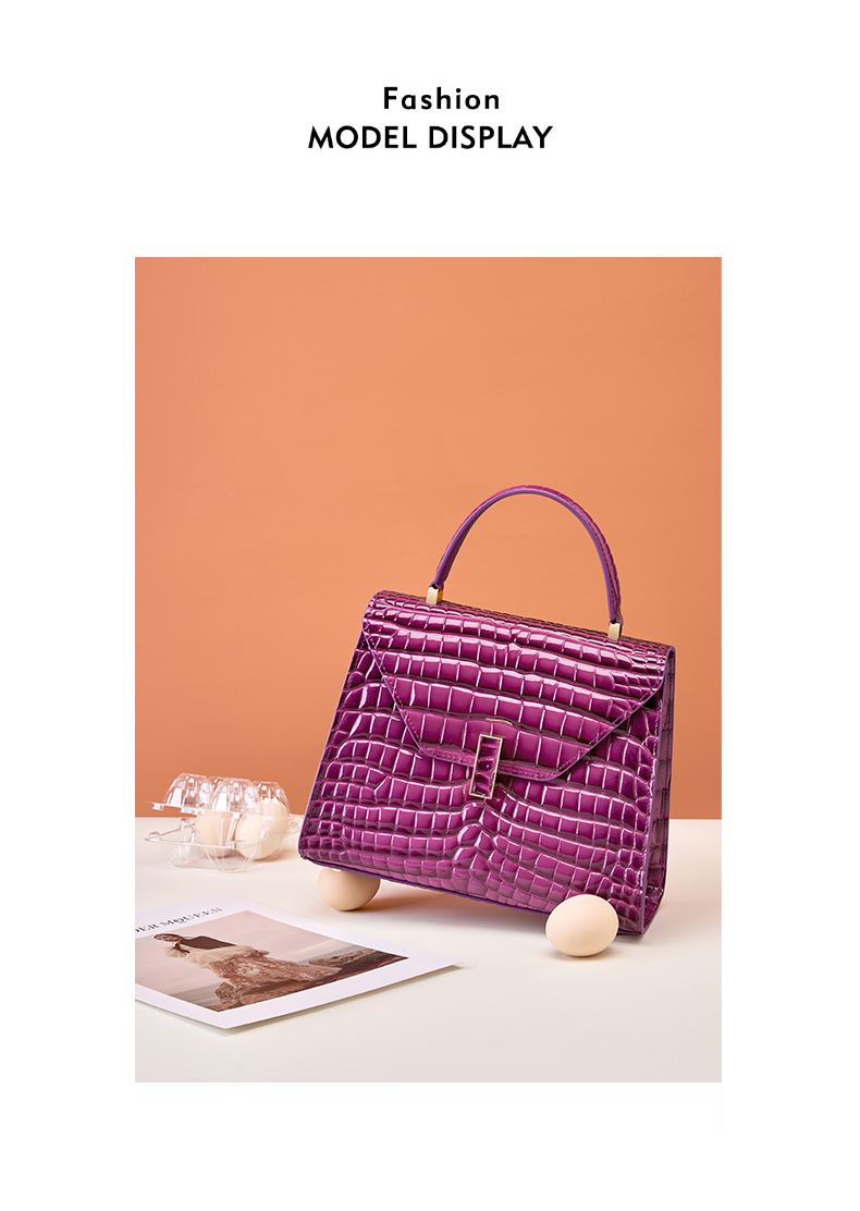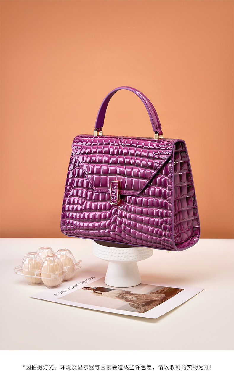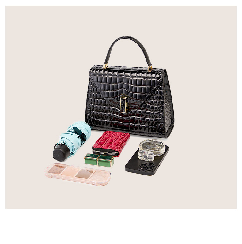 新款欧美时尚,牛皮高光拱珠鳄鱼纹气质手提包QSL-2153