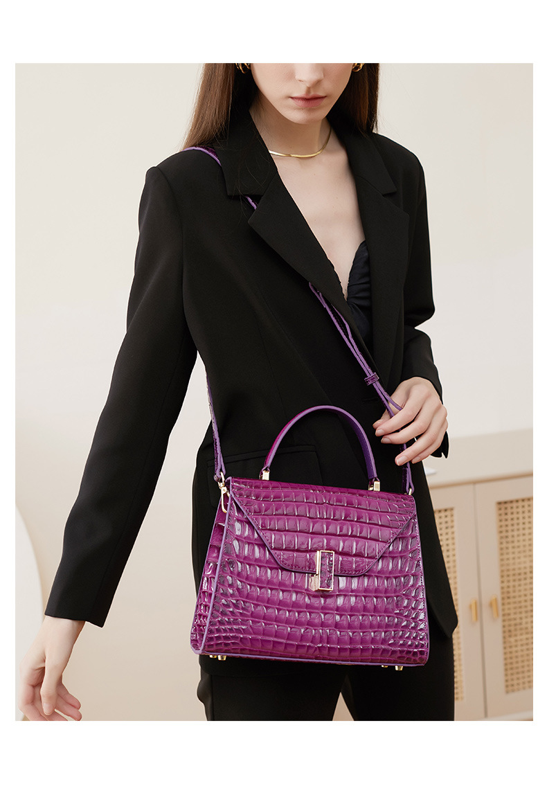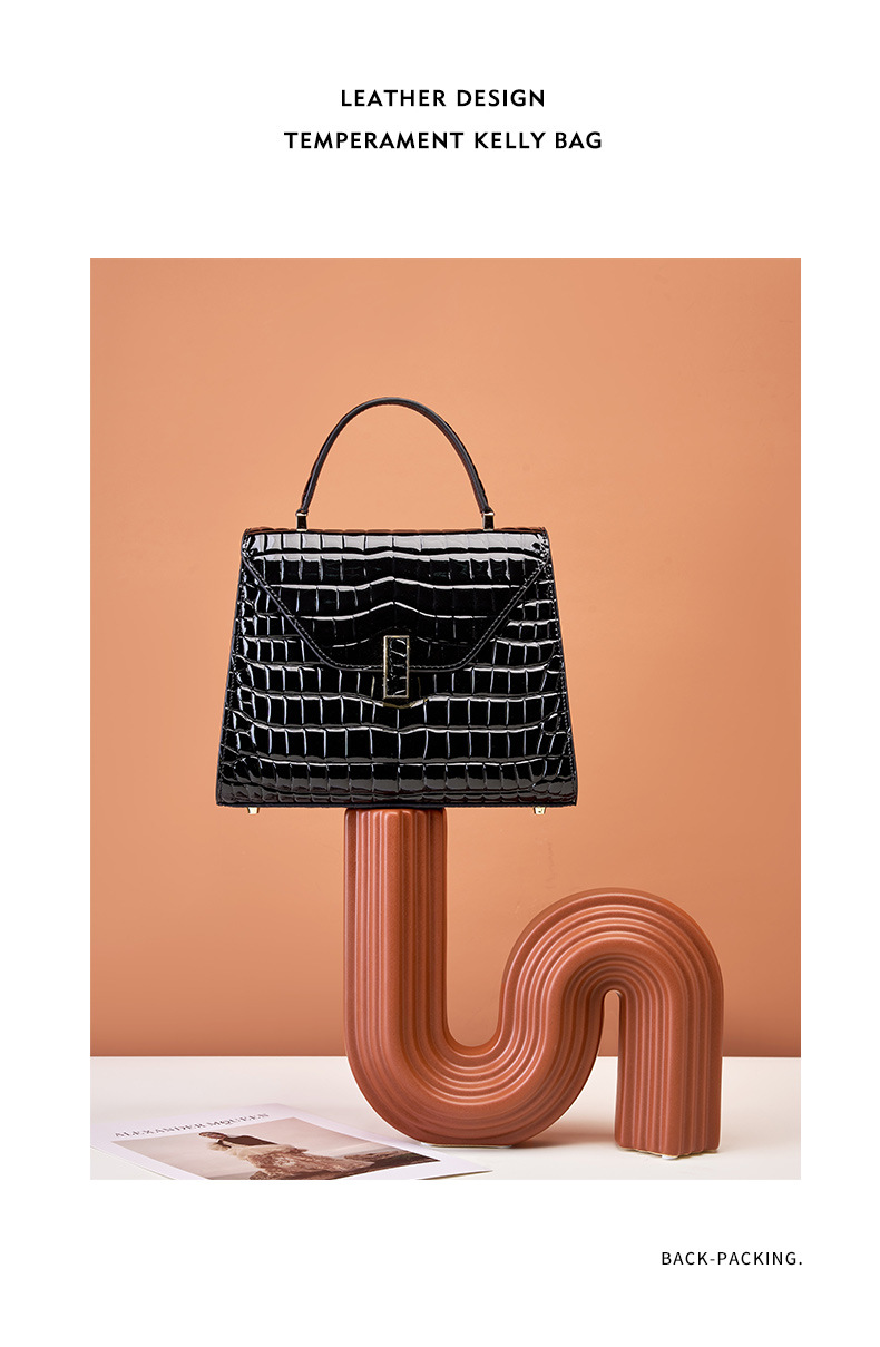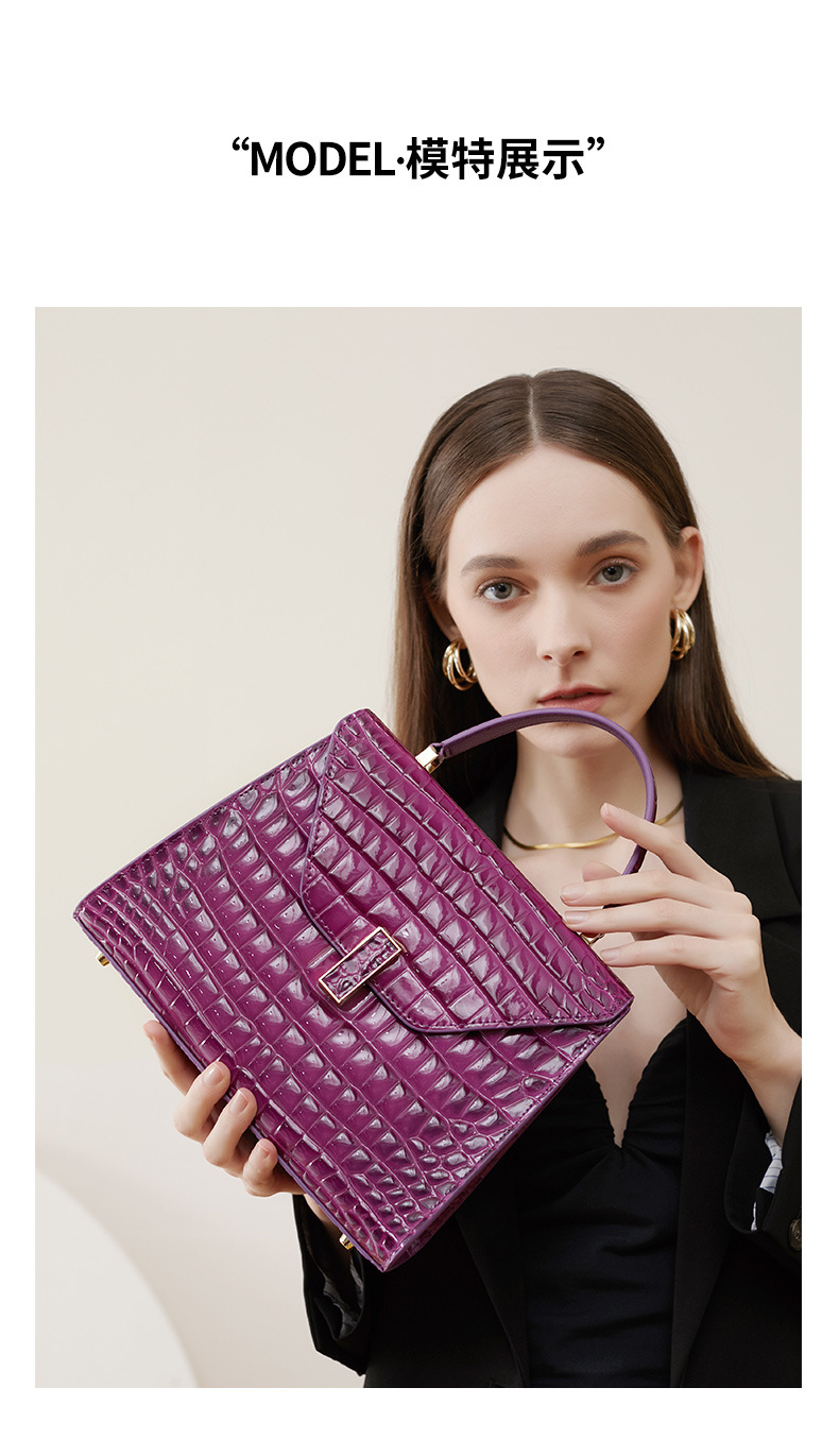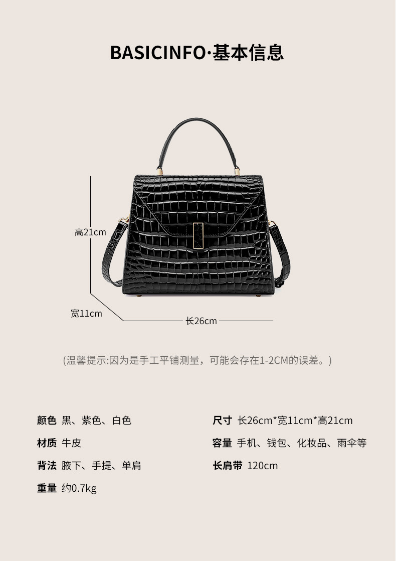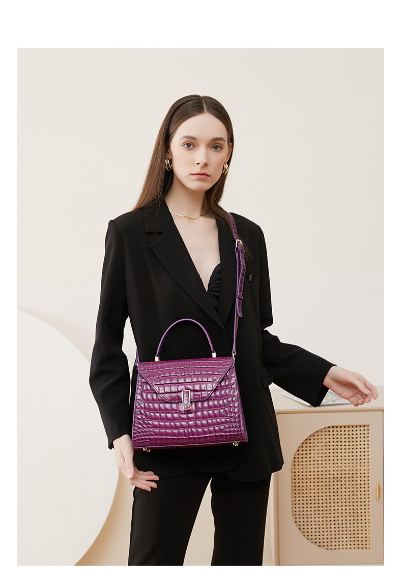 新款欧美时尚,牛皮高光拱珠鳄鱼纹气质手提包QSL-2153