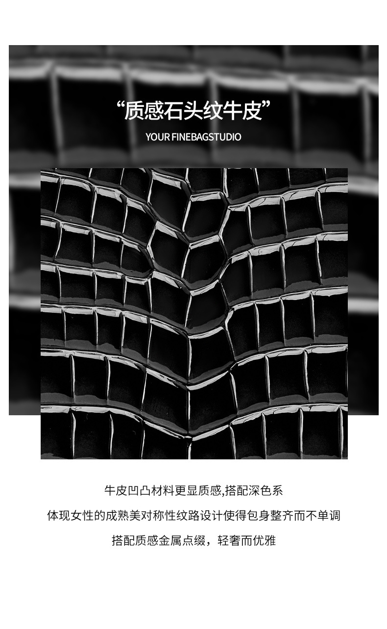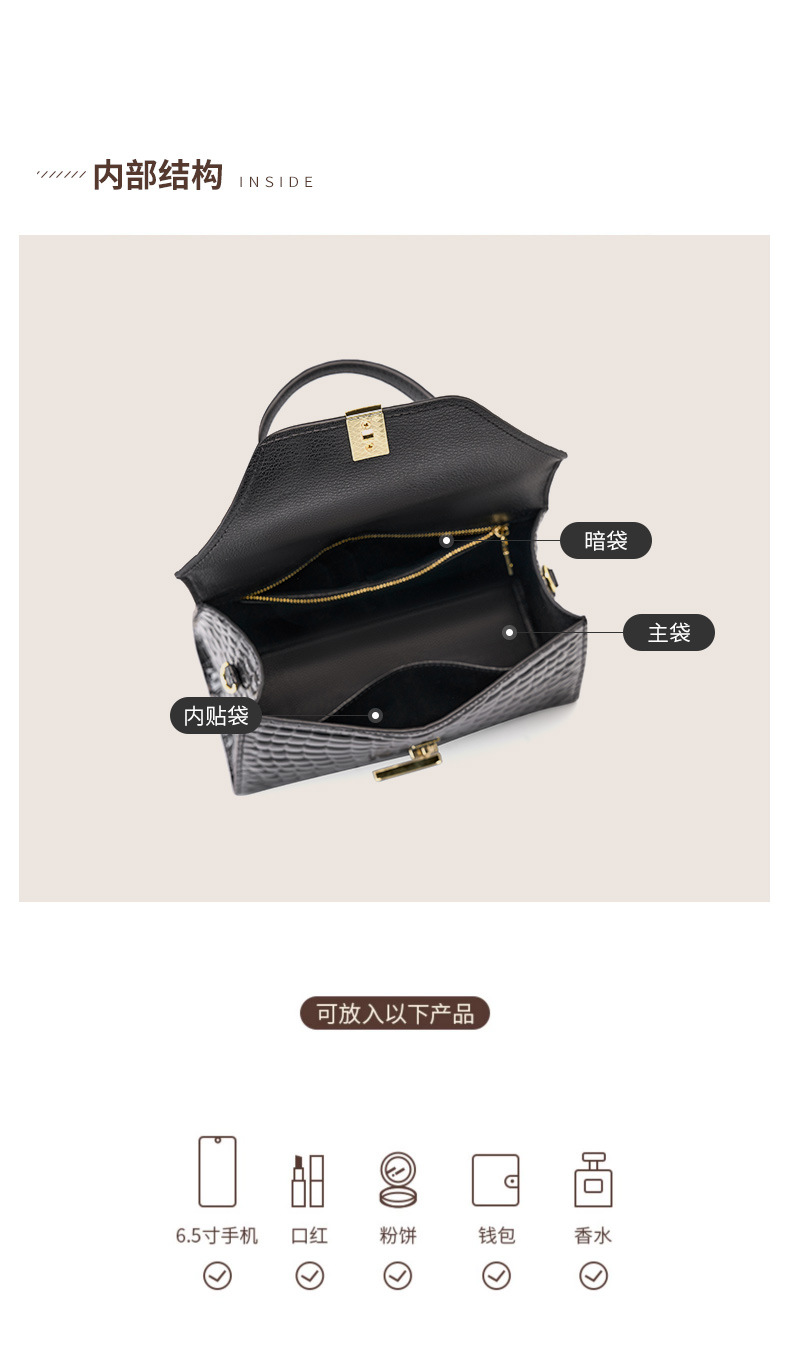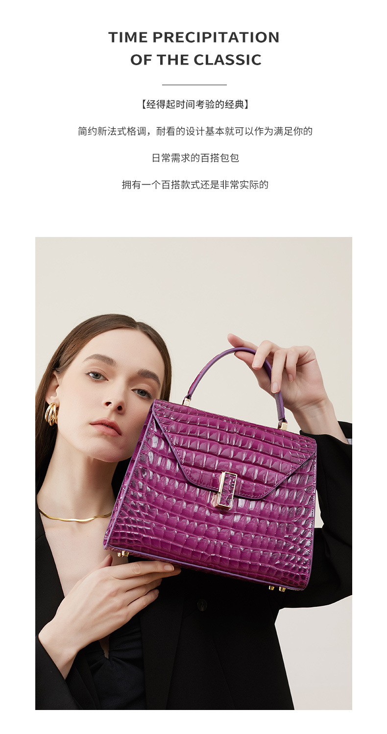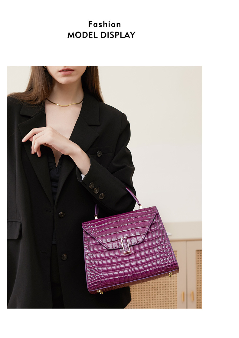 新款欧美时尚,牛皮高光拱珠鳄鱼纹气质手提包QSL-2153