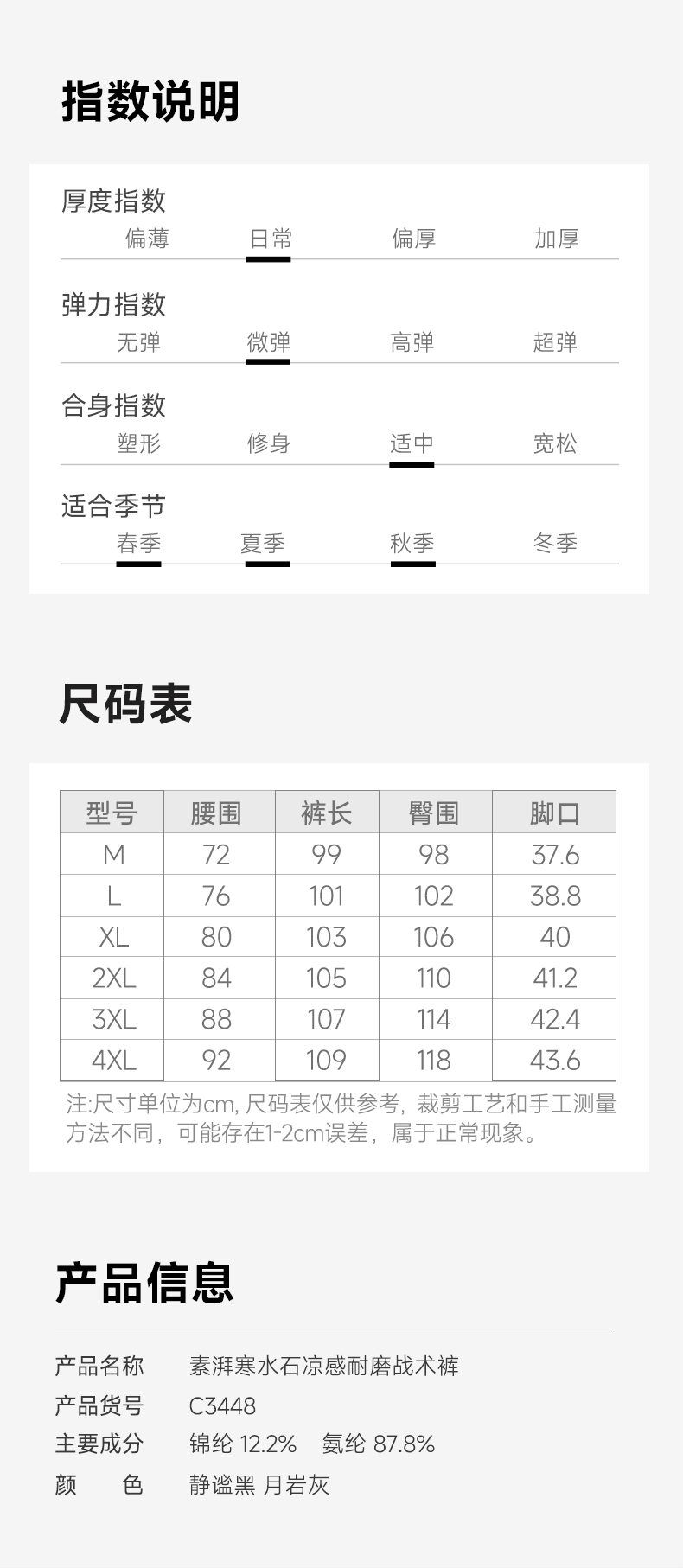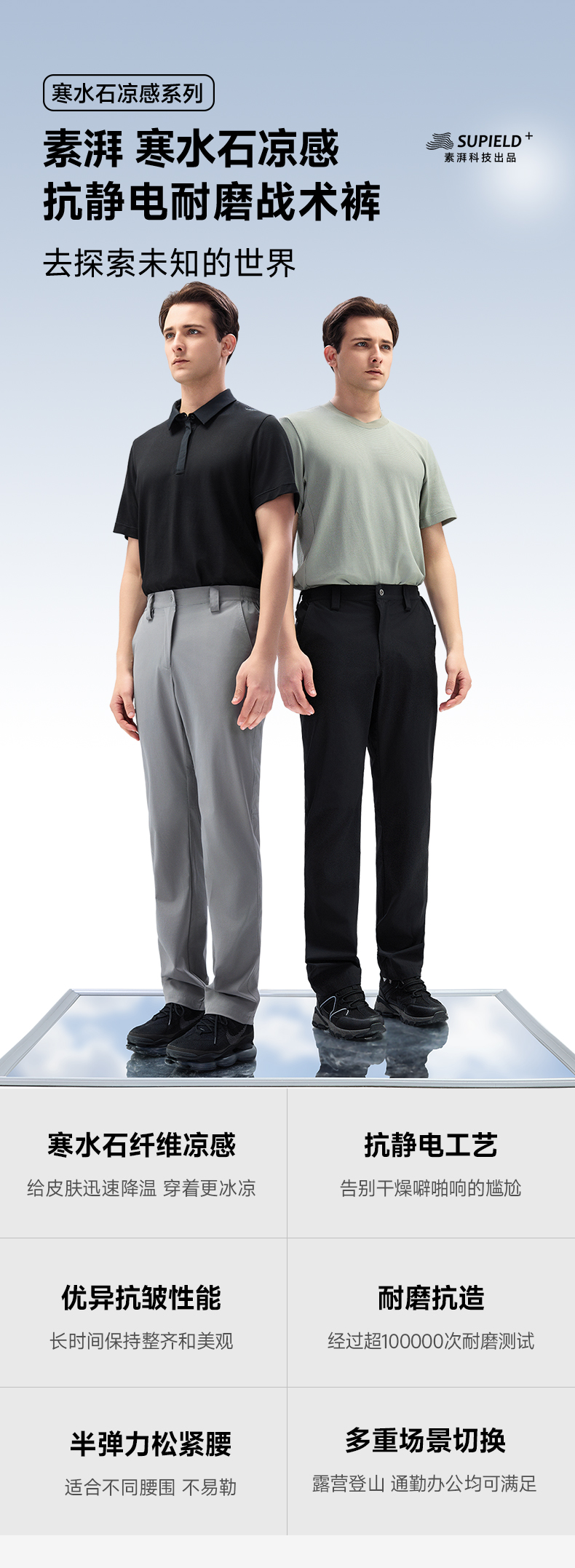 素湃Supield寒水石凉感耐磨抗皱休闲裤男户外战术裤超轻男裤