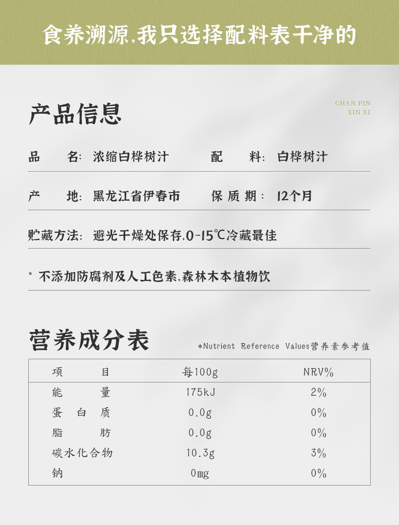 (家庭装)【浓缩桦树汁】12倍浓缩 取汁天然 安全0添加