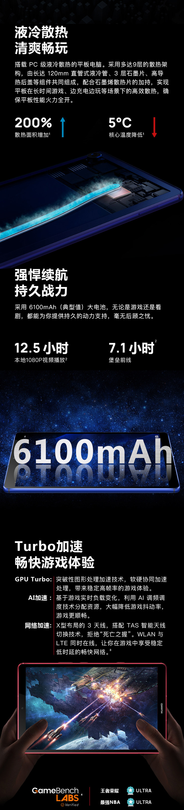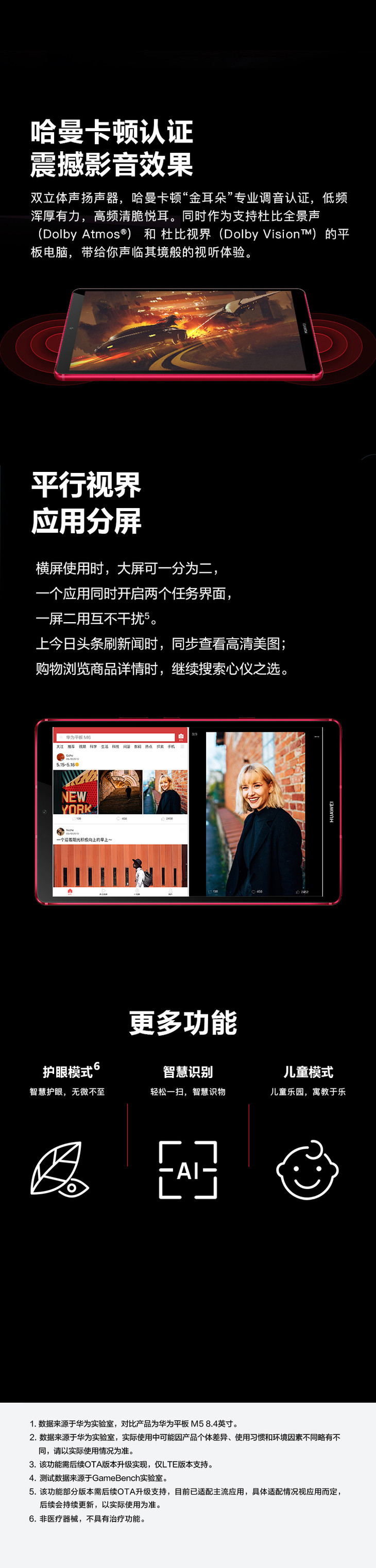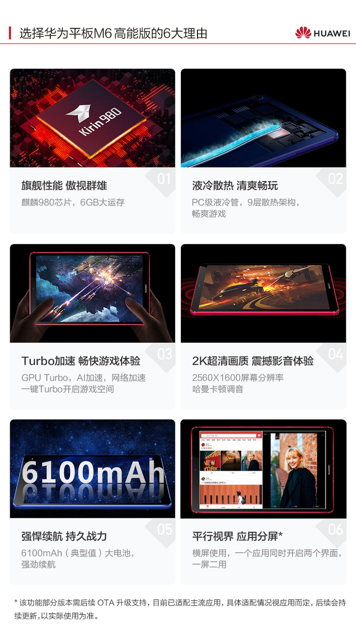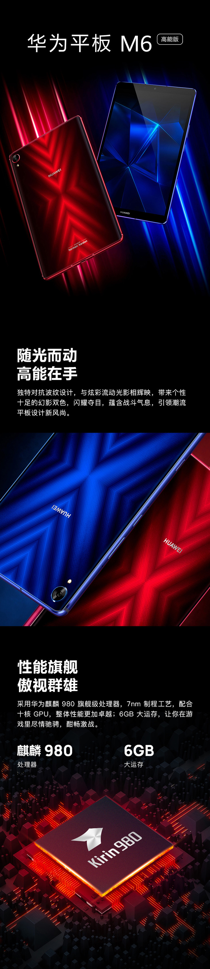 华为 HUAWEI 华为平板 M6 高能版 VRD-AL10 VRD-W10 8.4英寸 影音娱乐游戏平板电脑 6GB+128GB 全网通版 八核麒麟980芯片
