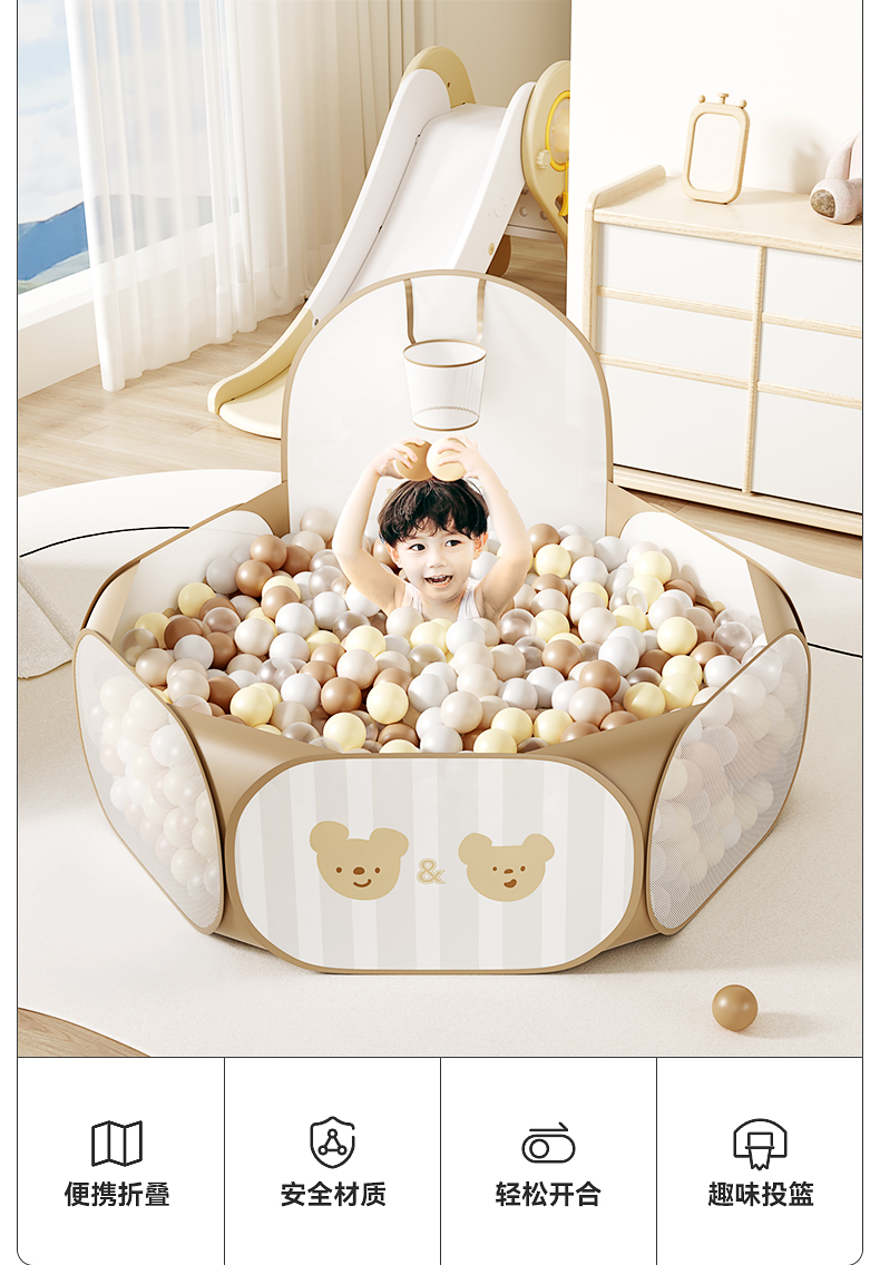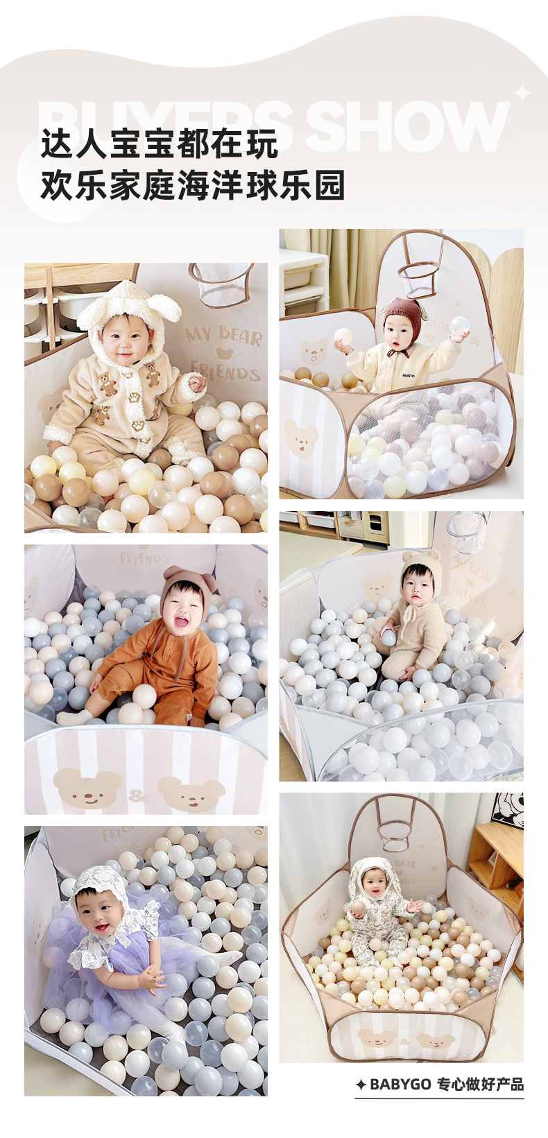 BabyGo魔法城堡球池波波球套装*无纺布折叠球池+100个海洋球
