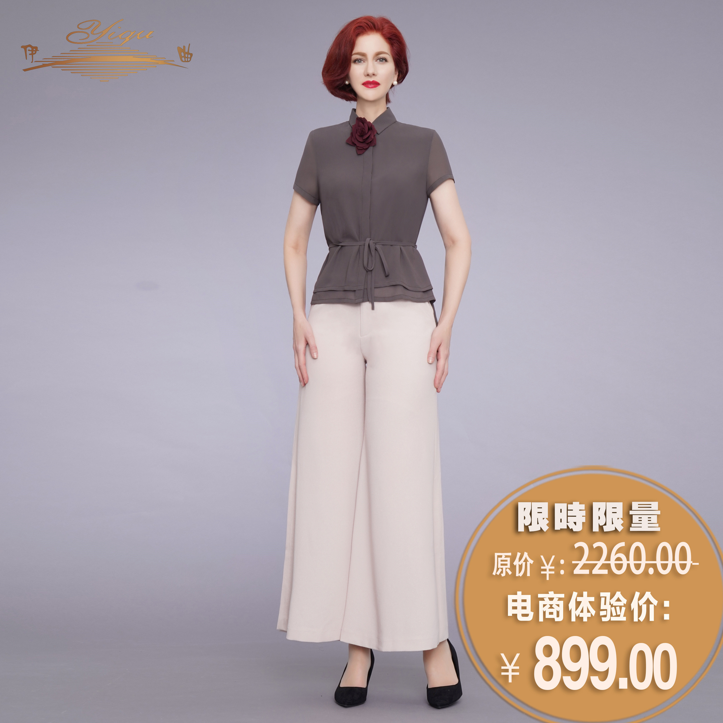 YIQU|“梧桐雨”双层短袖衬衣(烟灰)PT