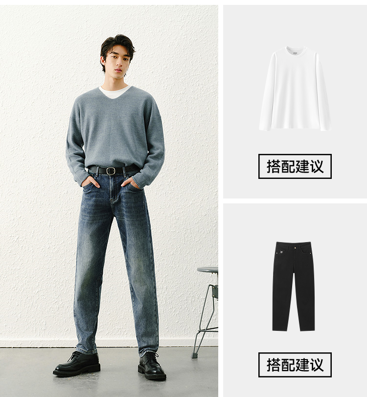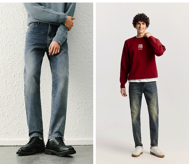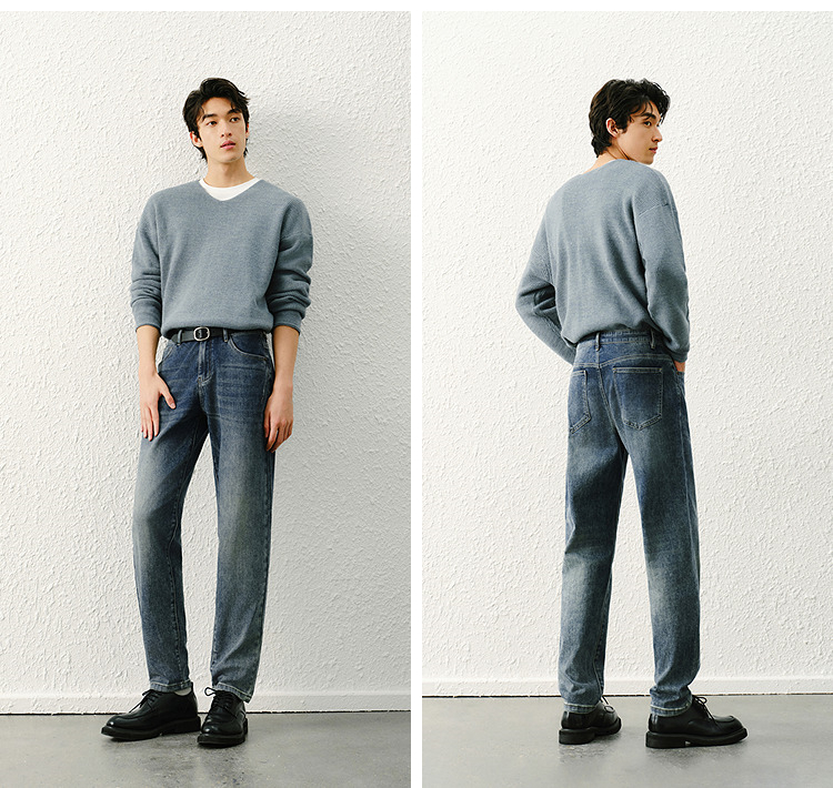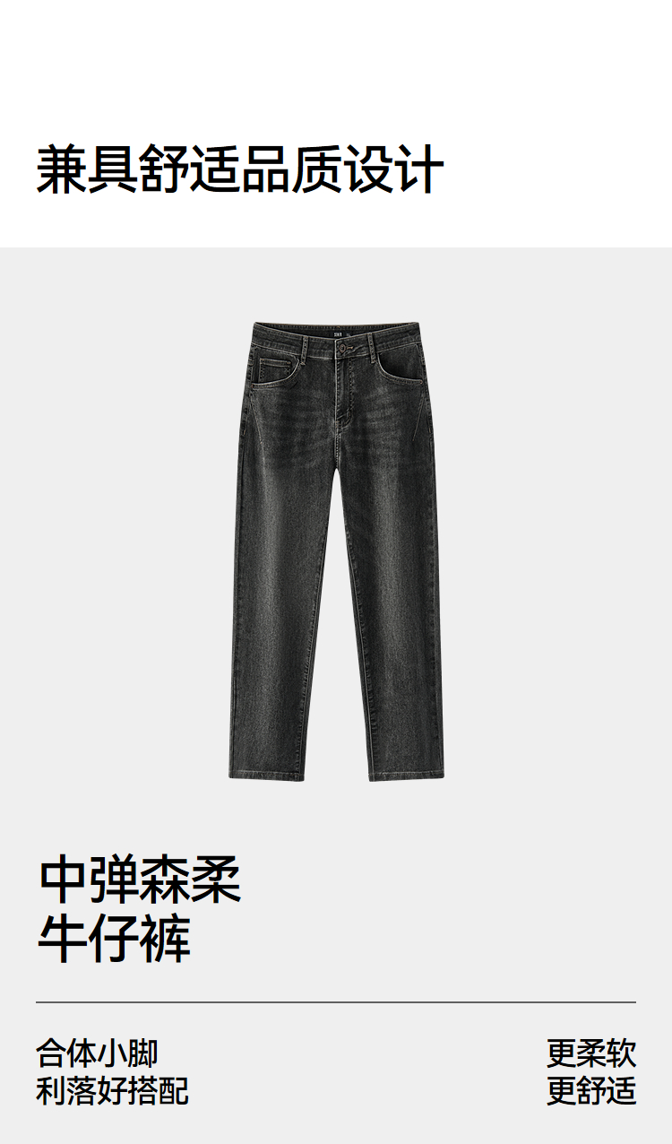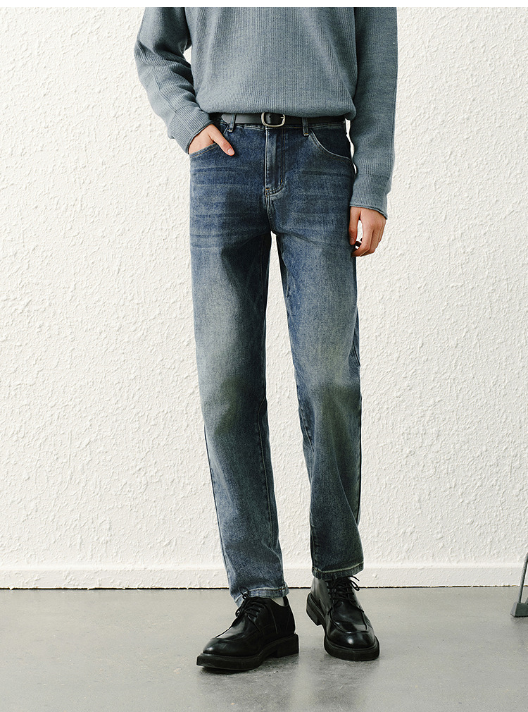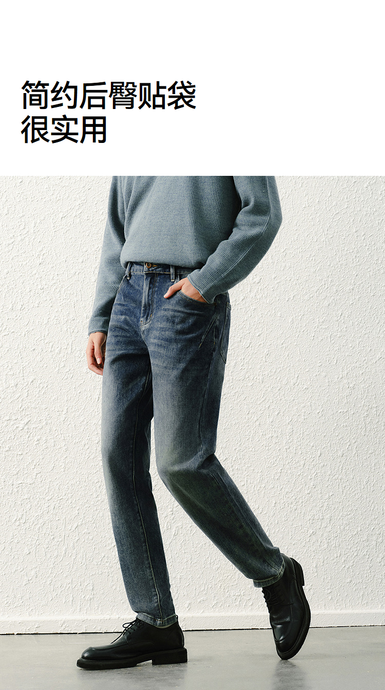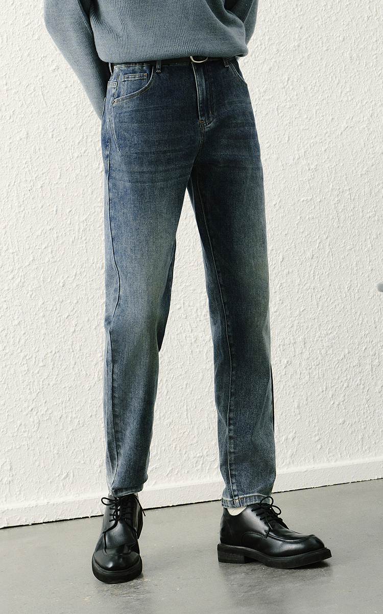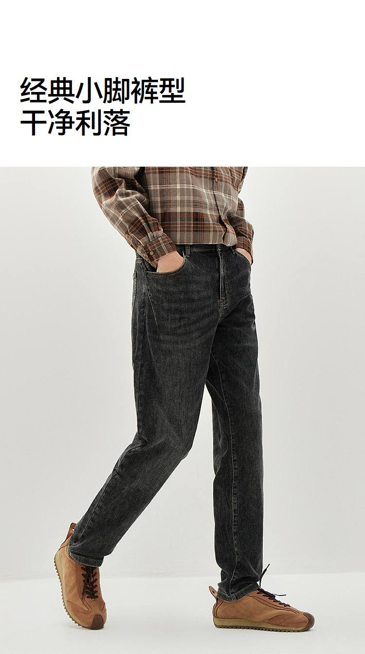 森柔|森马牛仔裤男生春季复古都市合体小脚裤子日常通勤弹力长裤