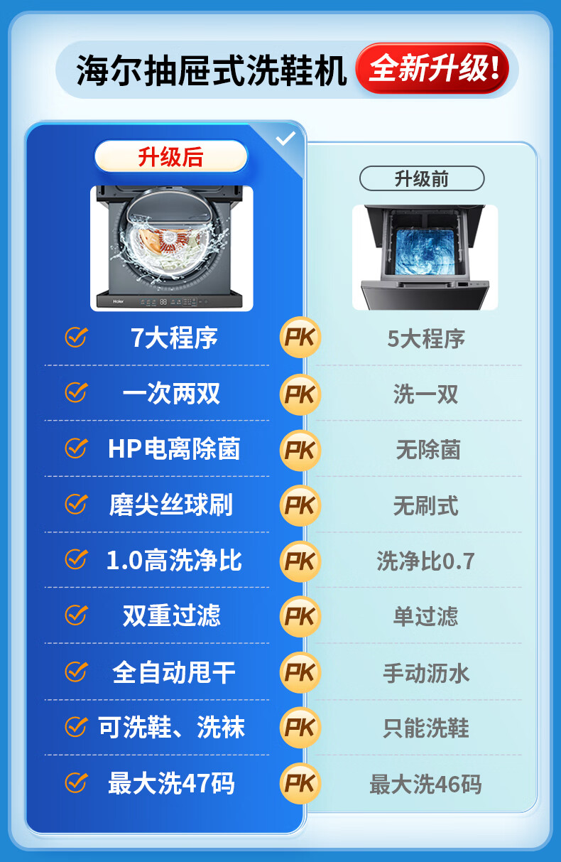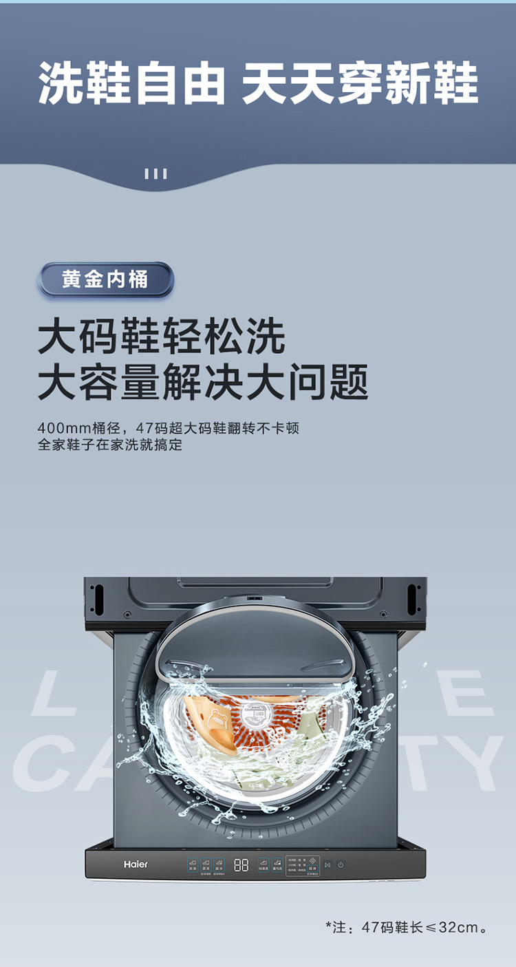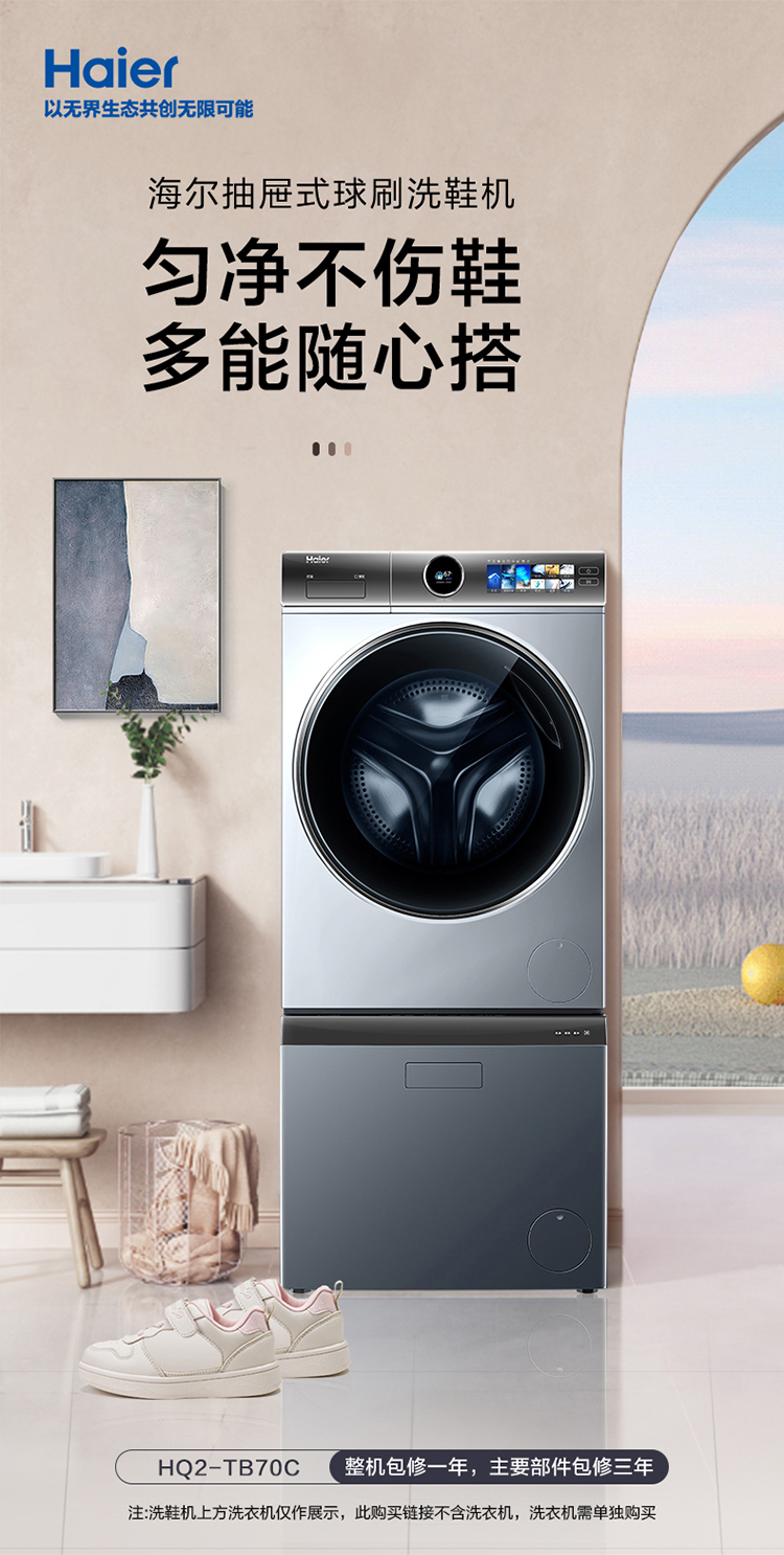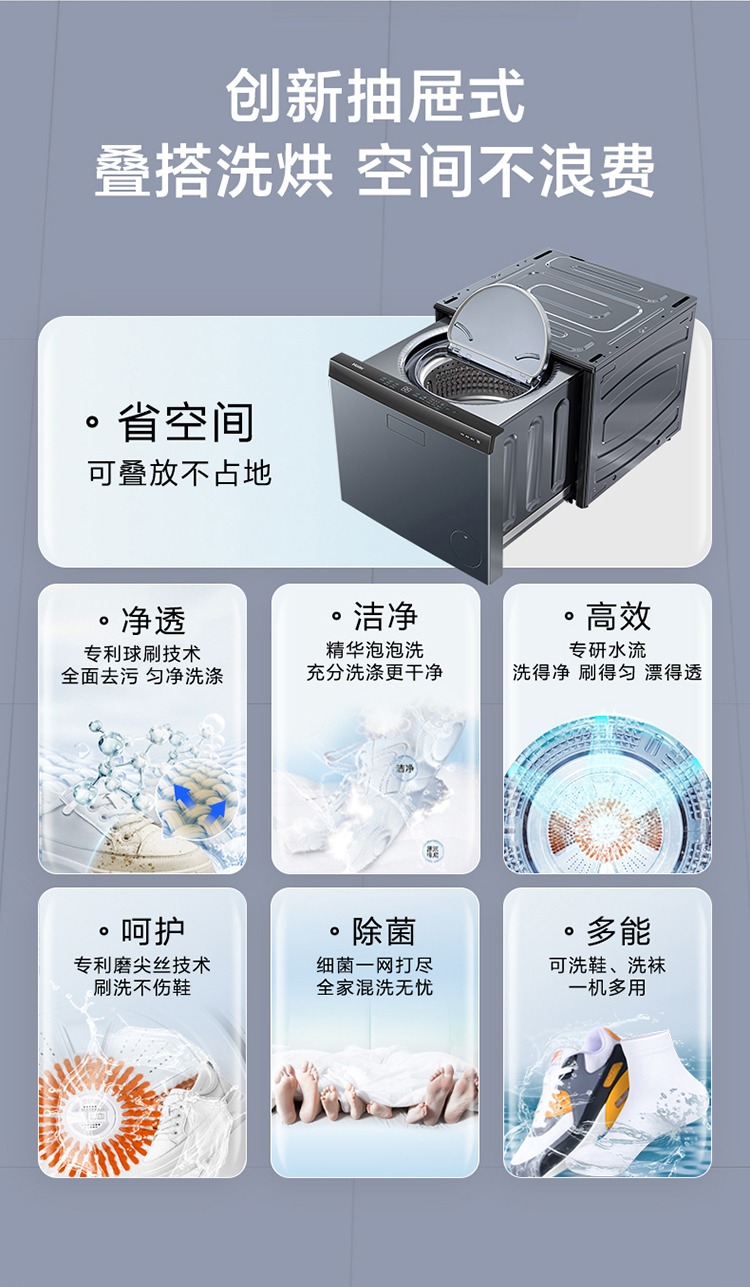 【旗舰新品-嵌入高端智能护理机】海尔洗鞋机全自动抽屉式球刷洗鞋机 磨尖丝毛刷洗的干净又护鞋 可与滚筒洗衣机组合安装 【抽屉式洗鞋机】洗鞋洗袜/电离除菌