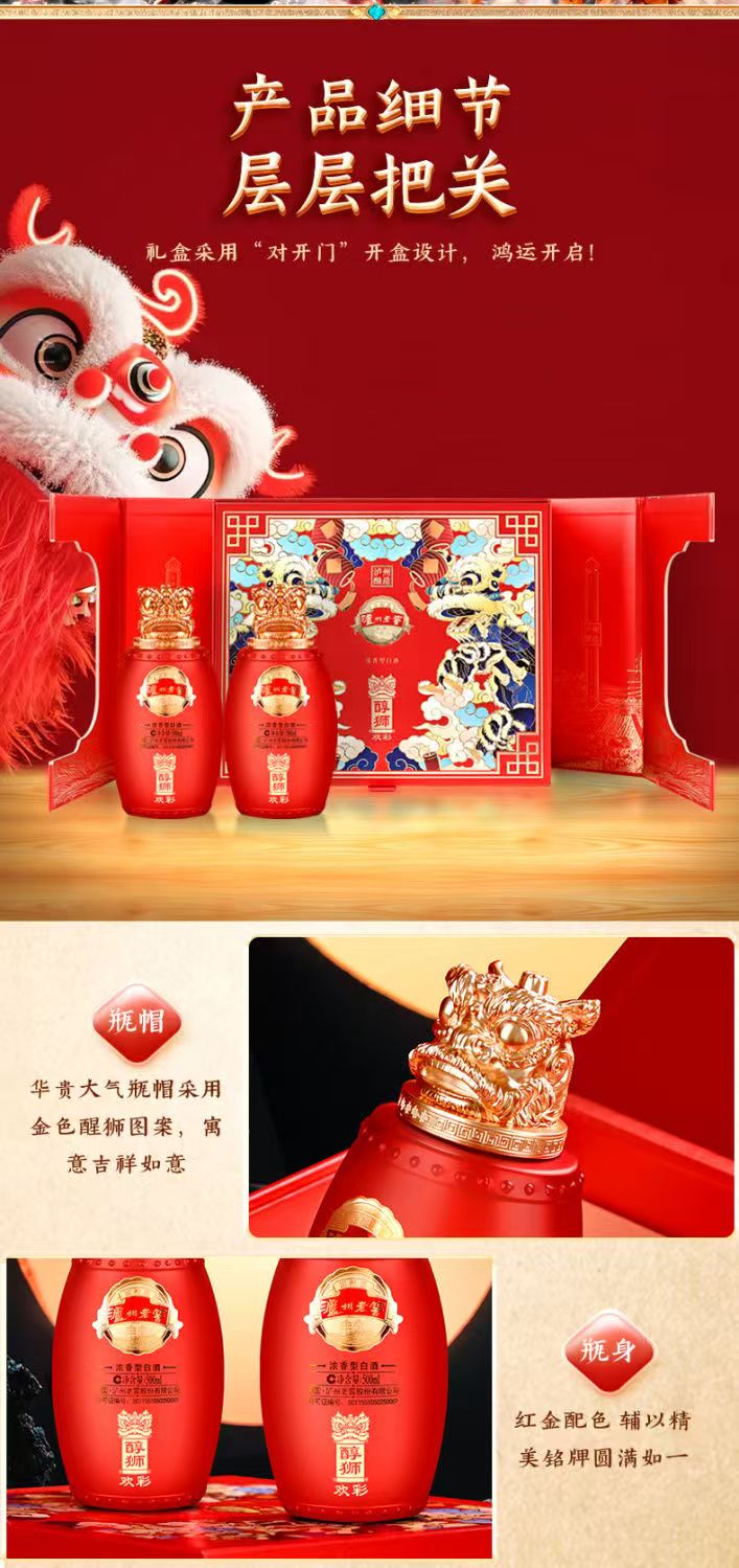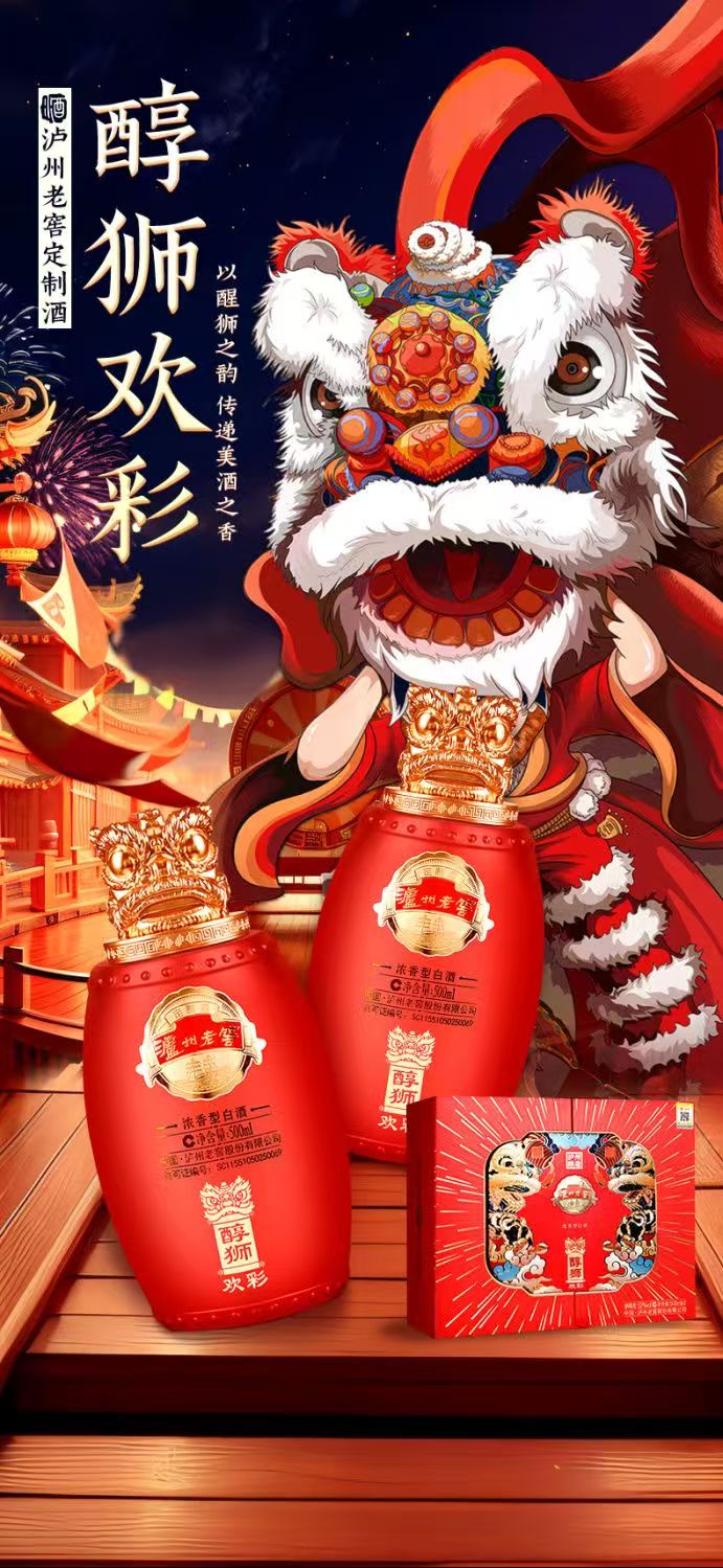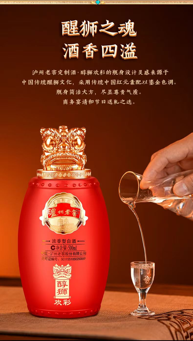 【送礼有面儿】泸州老窖股份出品·醇狮浪彩 甄选原料纯粮酿造 52度浓香型白酒500ml/瓶