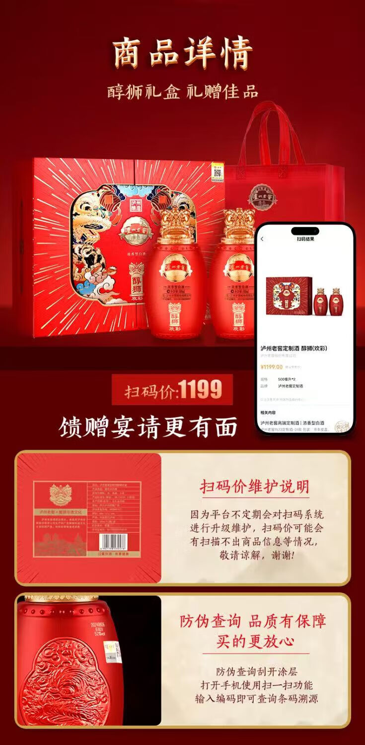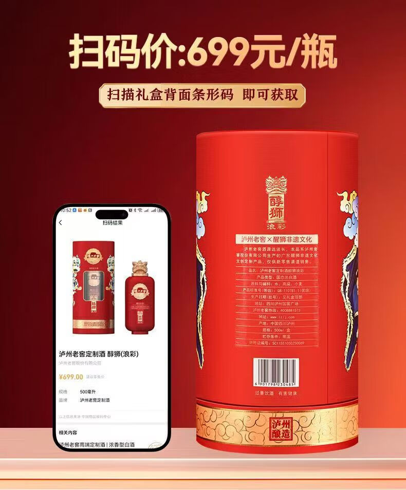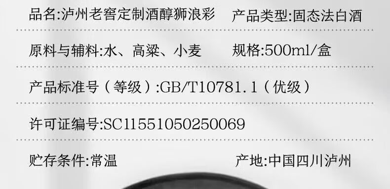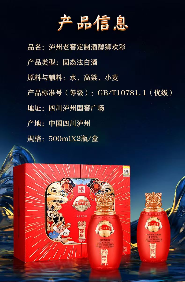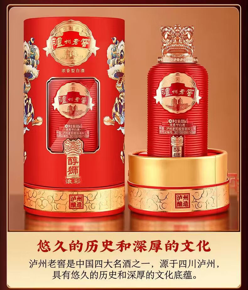 【送礼有面儿】泸州老窖股份出品·醇狮浪彩 甄选原料纯粮酿造 52度浓香型白酒500ml/瓶