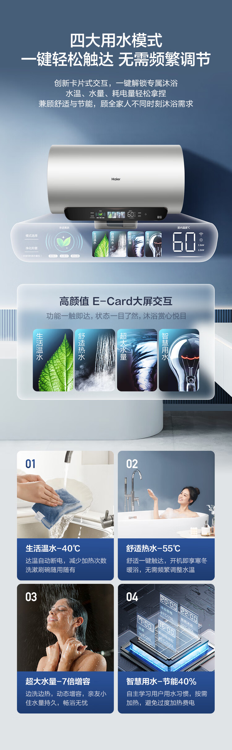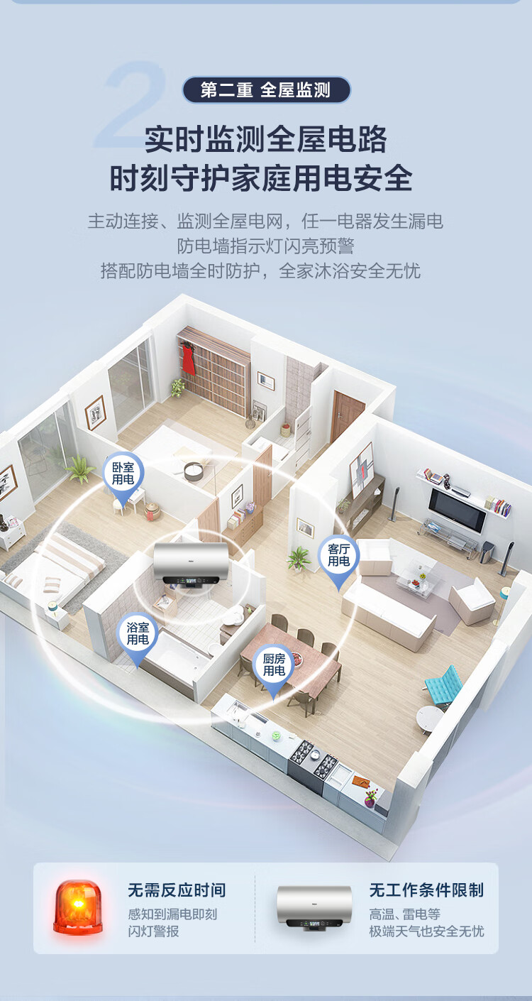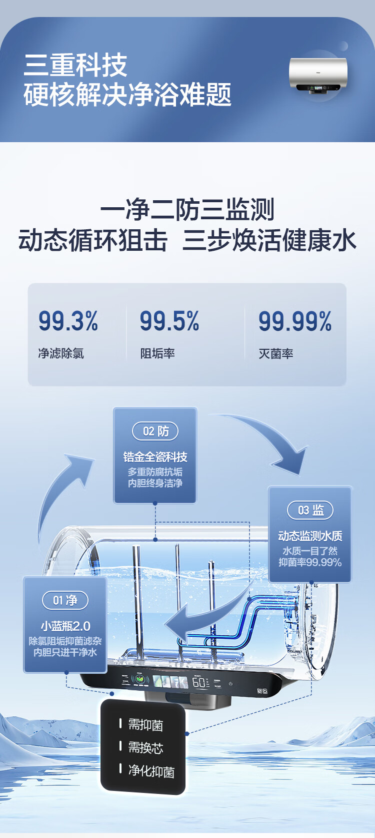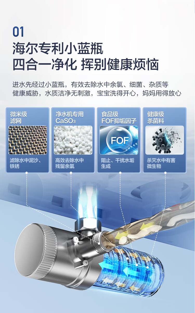海尔(Haier)【60JV7】60升电热水器 净滤小蓝瓶2.0 3.3KW变频 锆金特护 净化可视 一级能效 ES6002H-JV7U1*