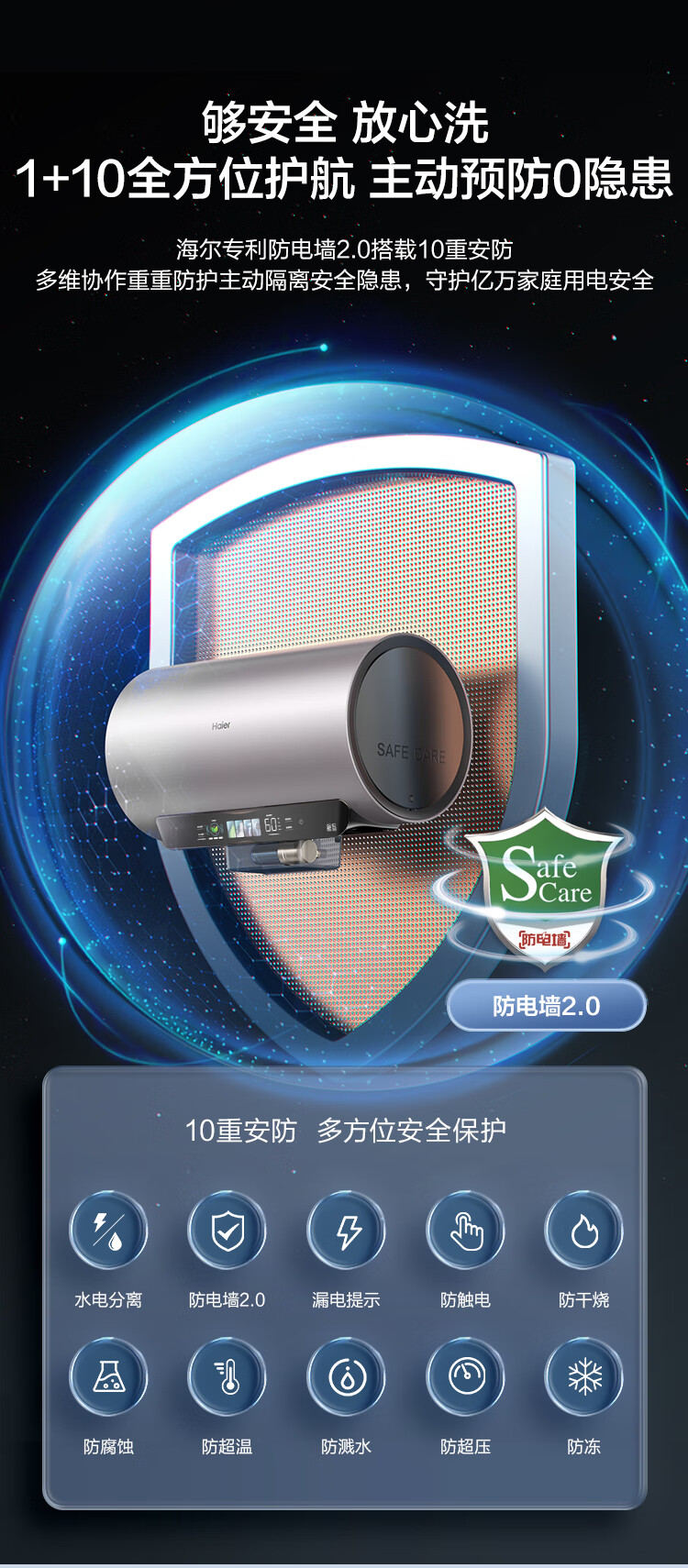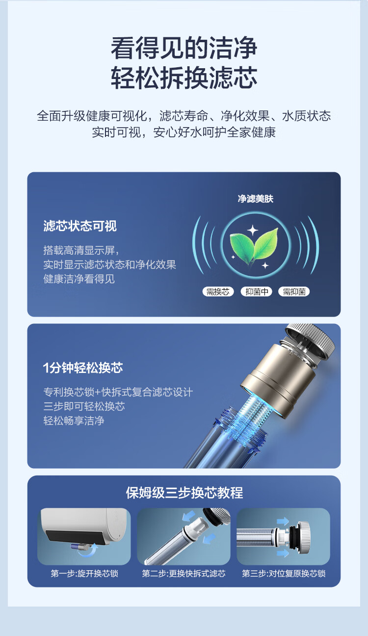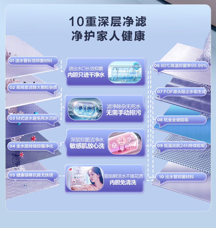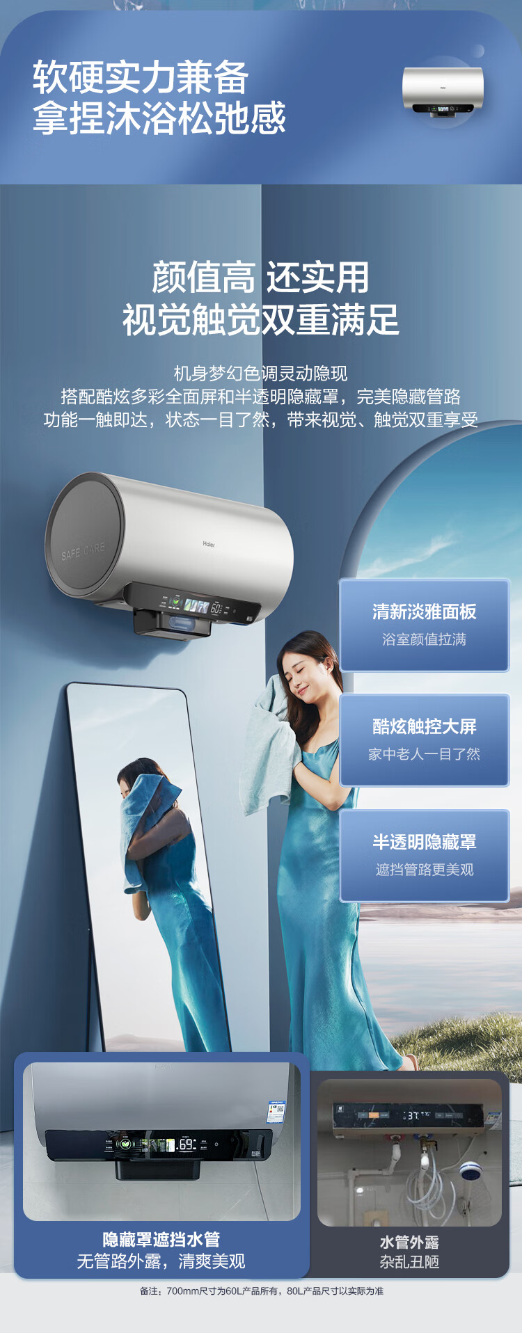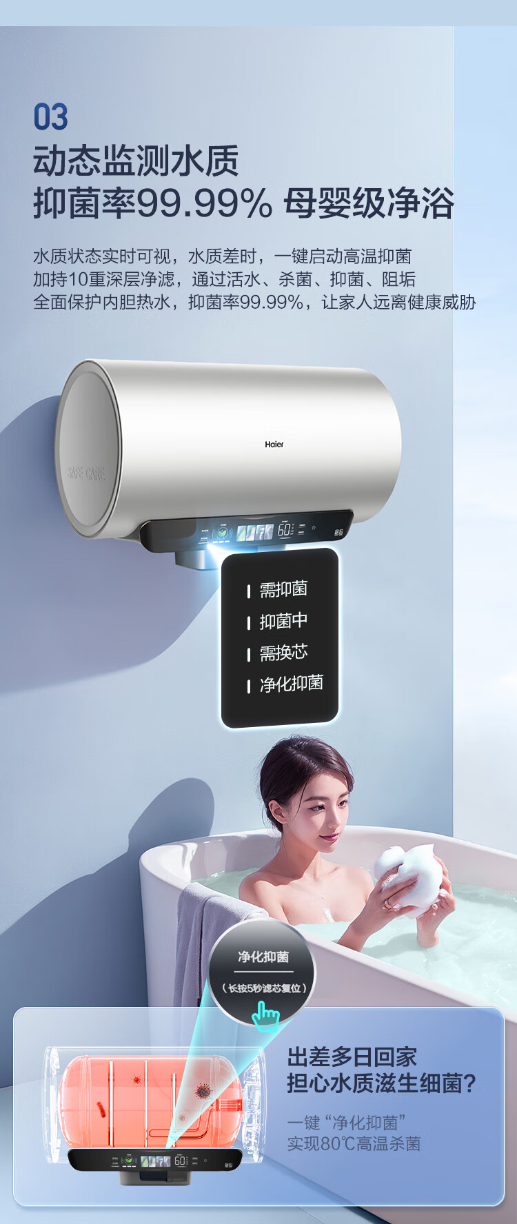 海尔(Haier)【60JV7】60升电热水器 净滤小蓝瓶2.0 3.3KW变频 锆金特护 净化可视 一级能效 ES6002H-JV7U1*