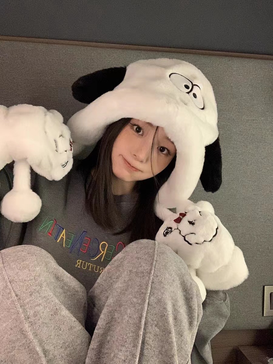 【可爱俏皮的小狗雷锋帽!】秋冬爆款骑车保暖护耳显脸小韩版卡通帽子,俏皮又时尚 透气保暖 蓬松毛绒包裹 温暖显脸,坐车出行更加时尚流行 hh