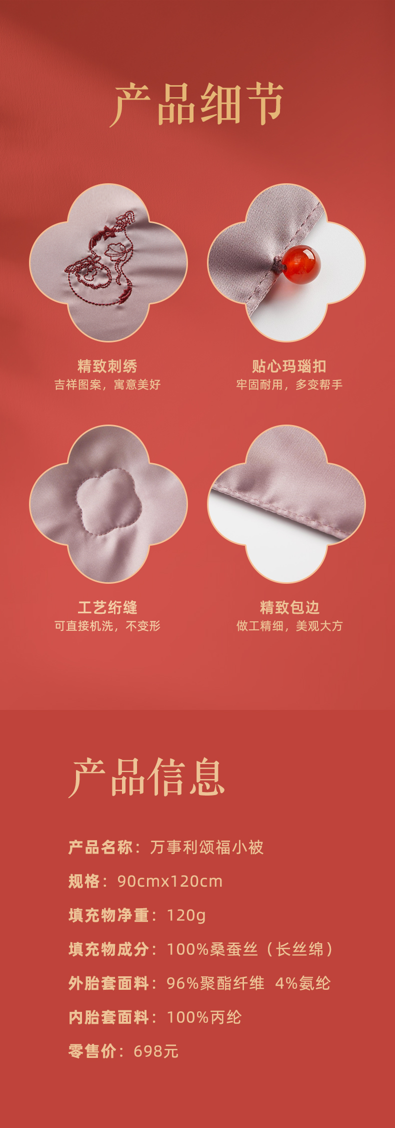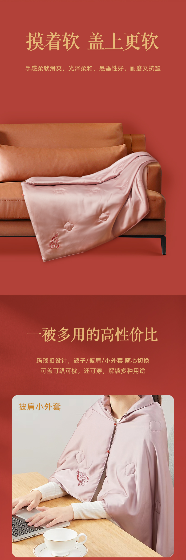 万事利100%桑蚕丝真丝多功能披肩办公室便携被颂福小被