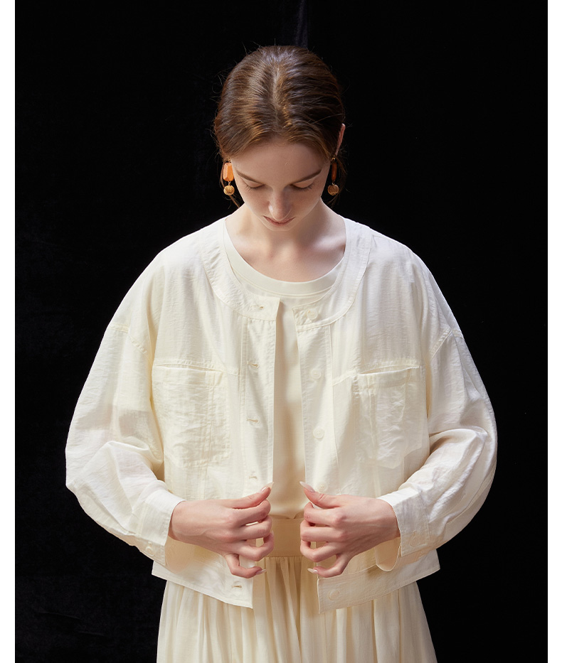 FAMECOCO范可儿新中式天丝短款宽松防晒外套FAD3AB003