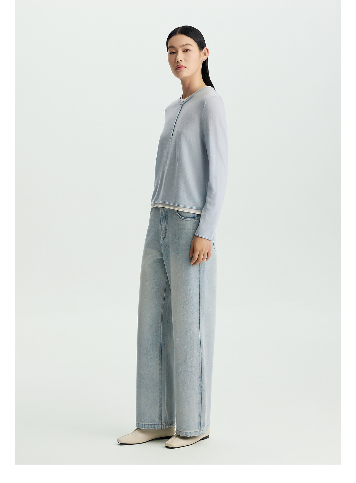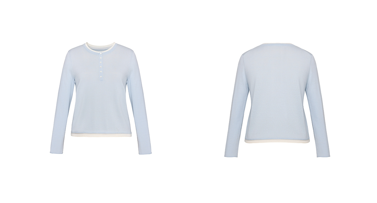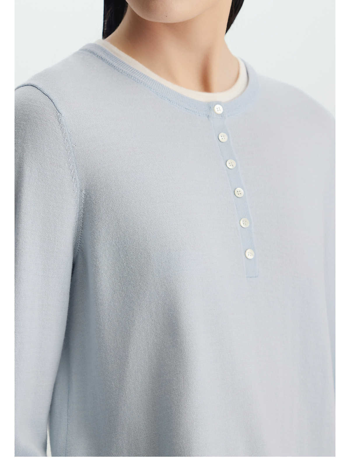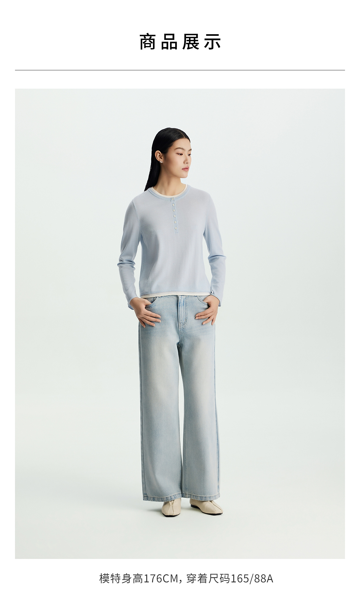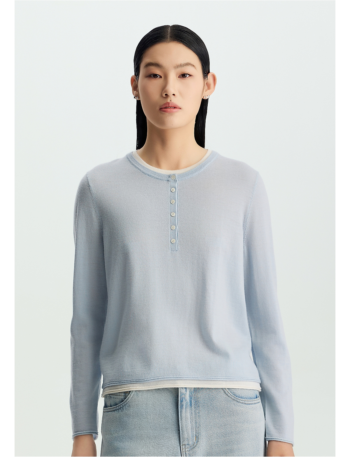 商场同款PURE TOUCH26春夏新款圆领羊毛针织衫撞色领直筒套头衫