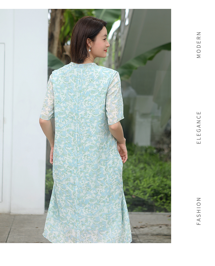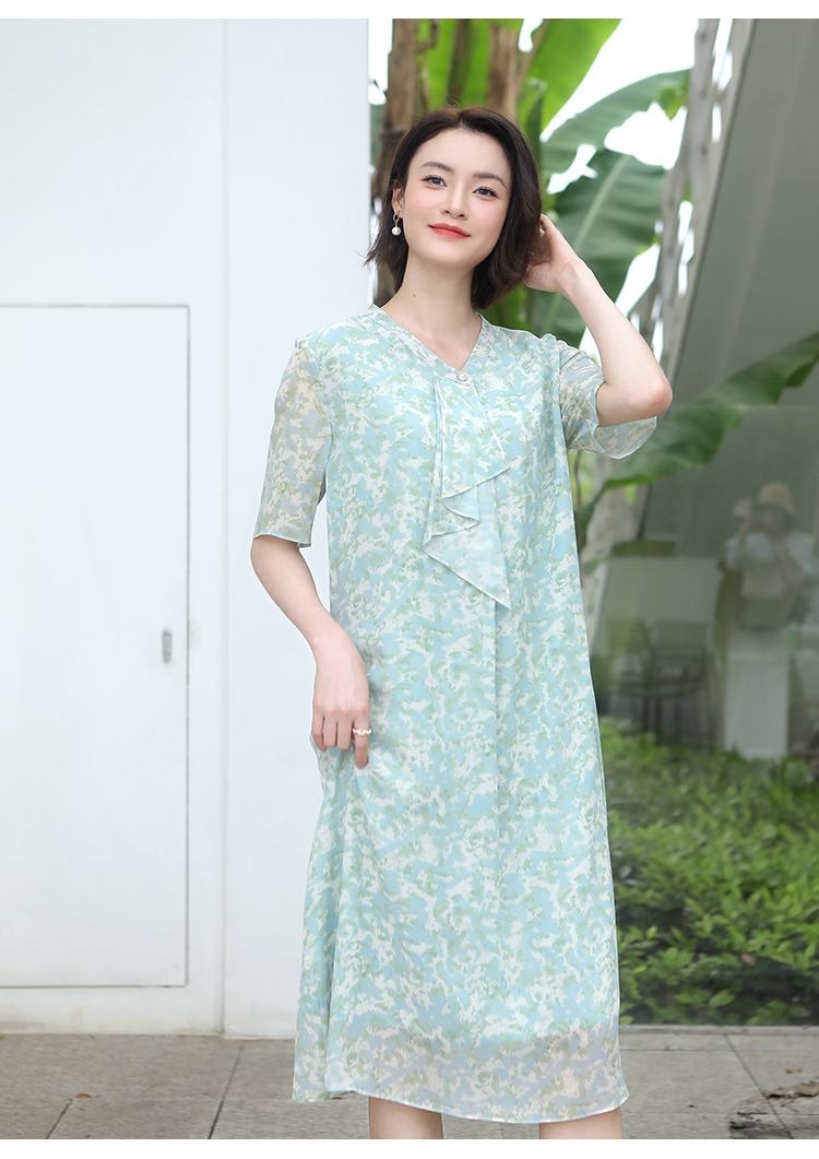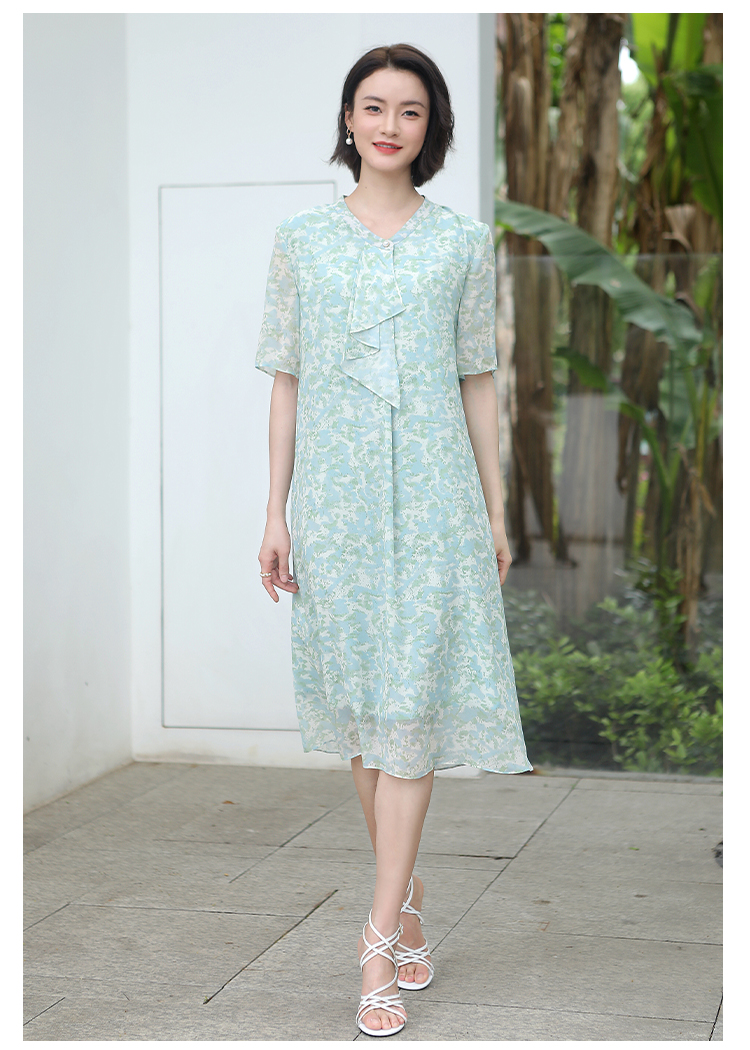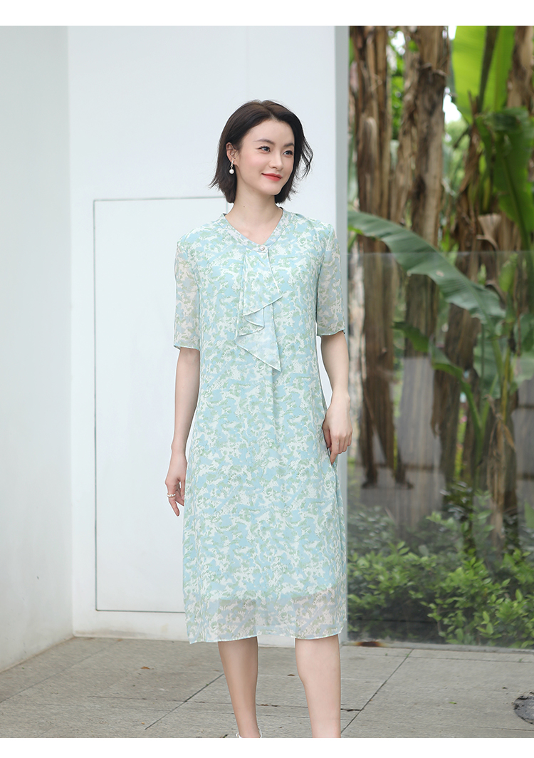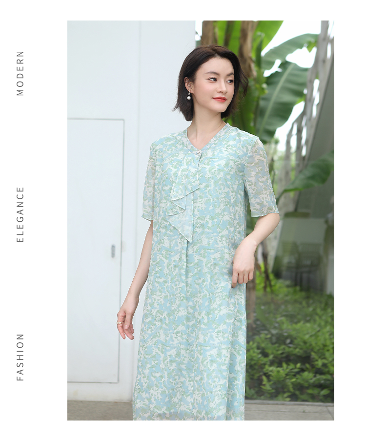夏季新款 气质优雅碎花桑蚕丝连衣裙女E32LS107