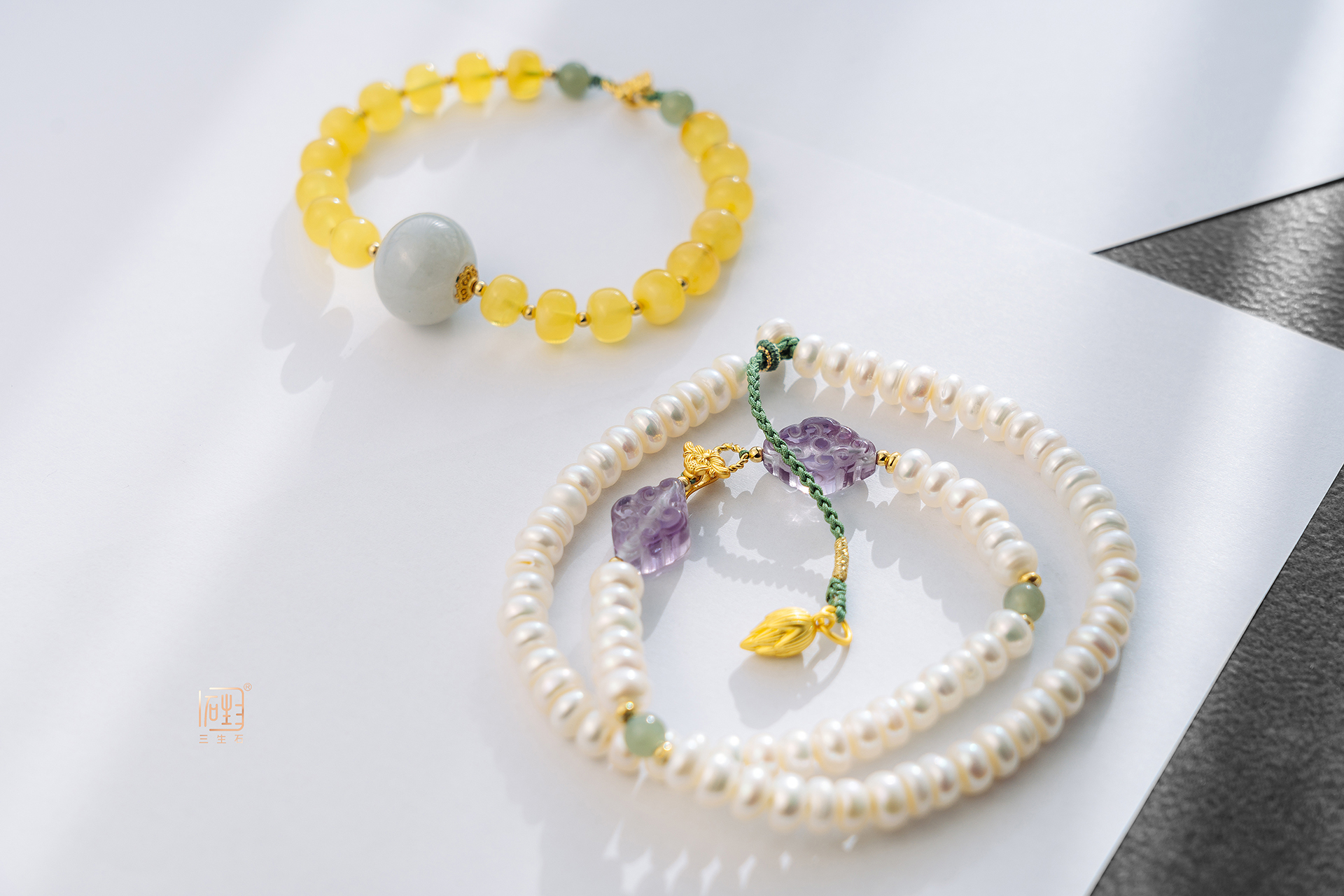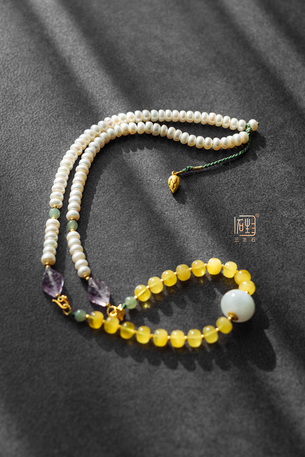 天然珍珠、蜜蜡、紫水晶的碰撞结合