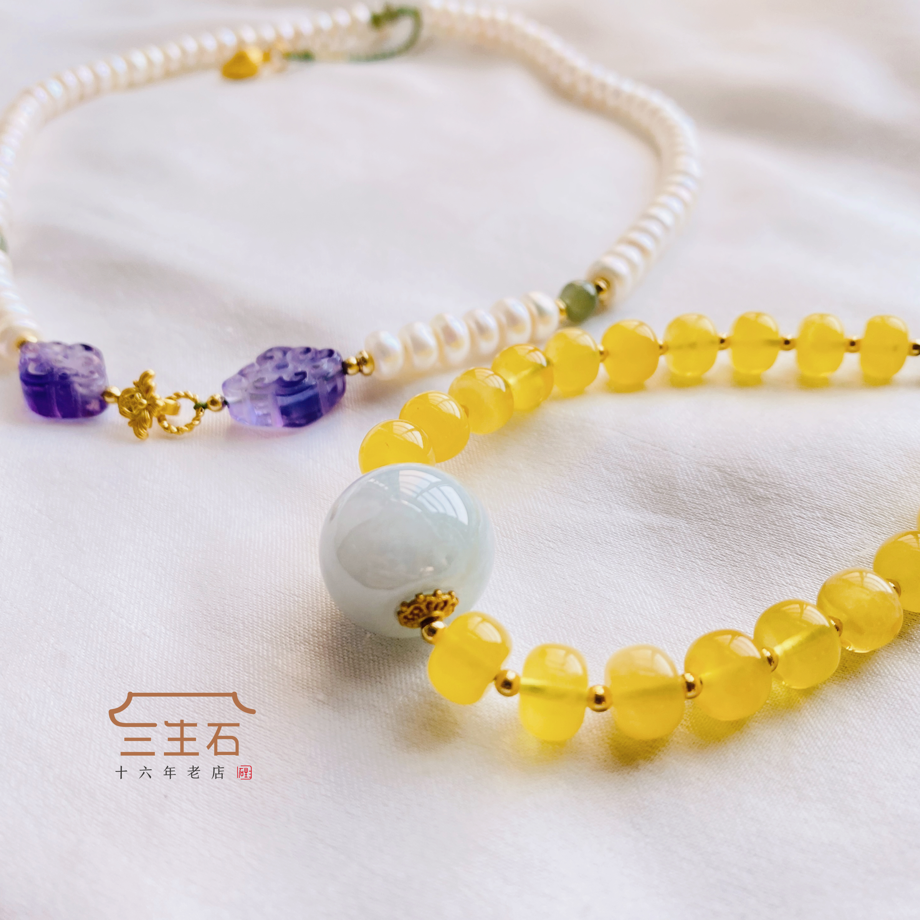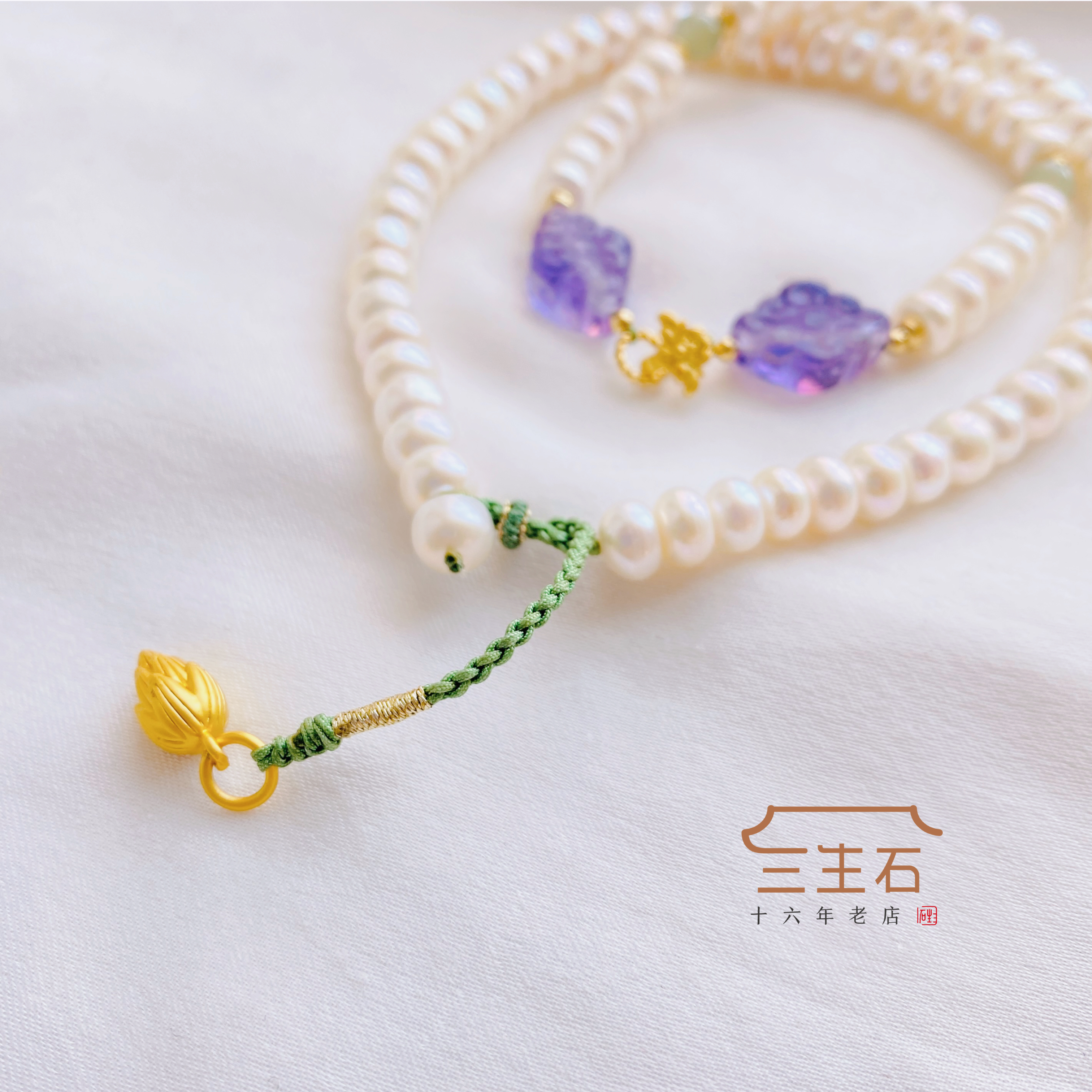 三生石·天然珍珠蜜蜡紫晶国风多用项链