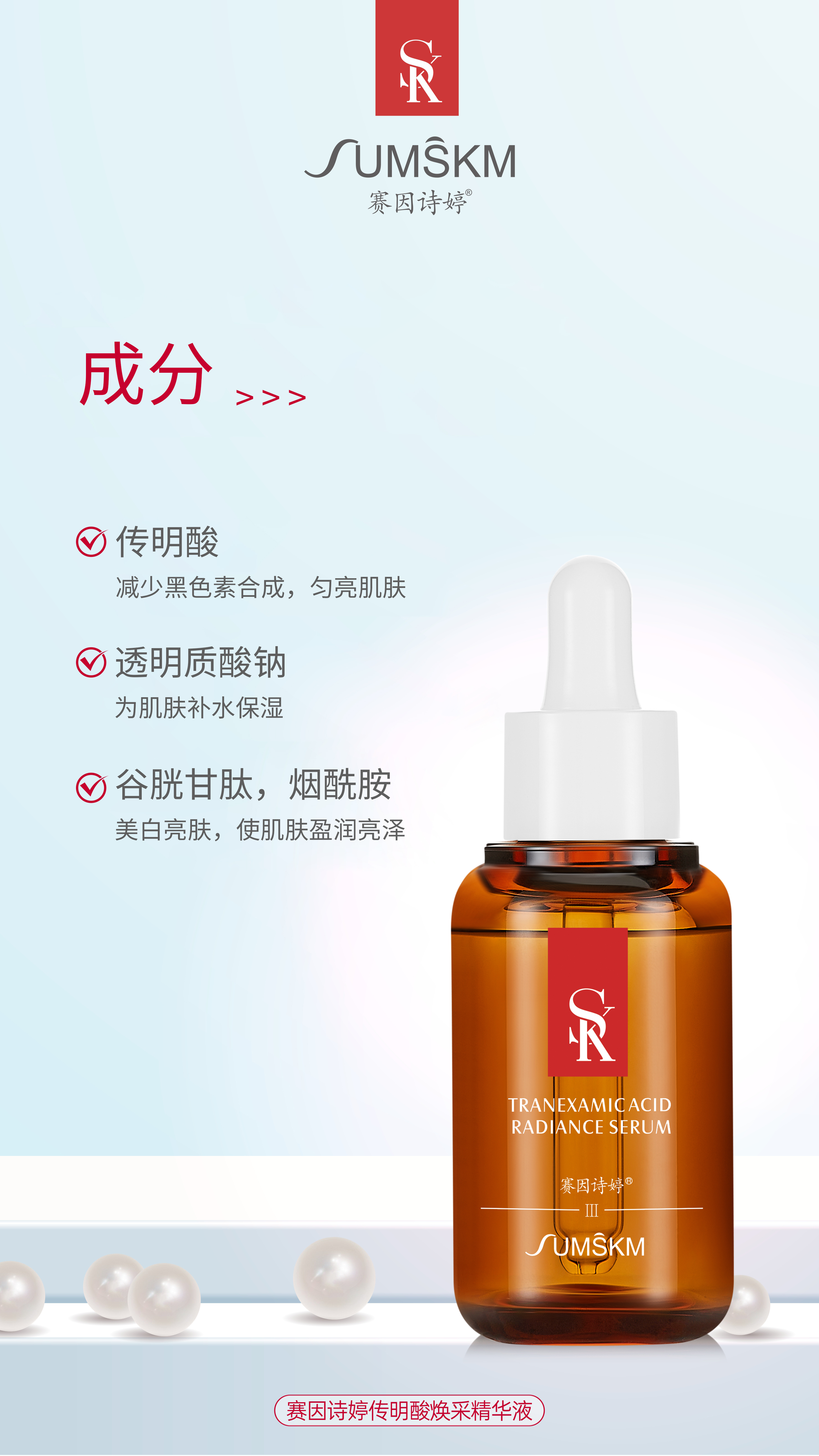 【作用】富含高浓度的亮肤成分“凝血酸”,沁润肌肤,令肌肤细腻柔嫩,盈润亮泽
