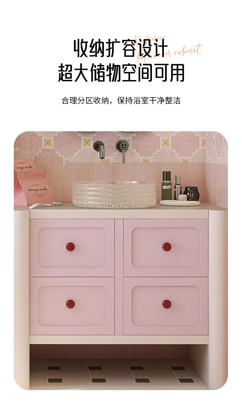 卫生间彩色洗漱台上盆洗脸盆多巴胺浴室柜组合台撞色柜洗手池 商品图4