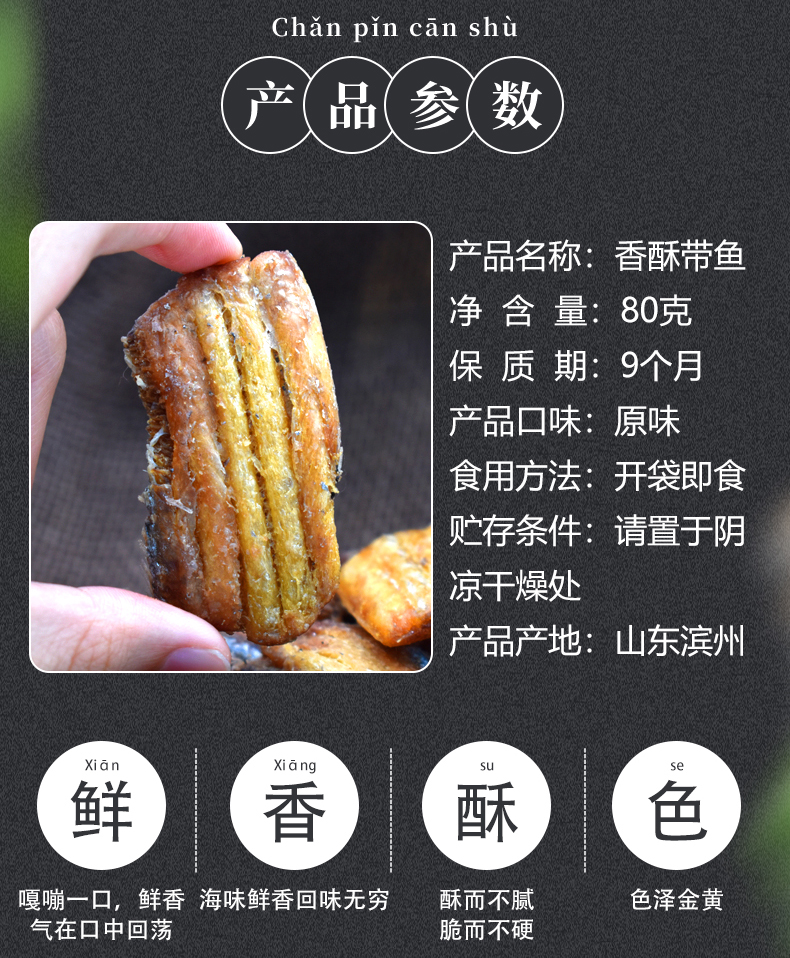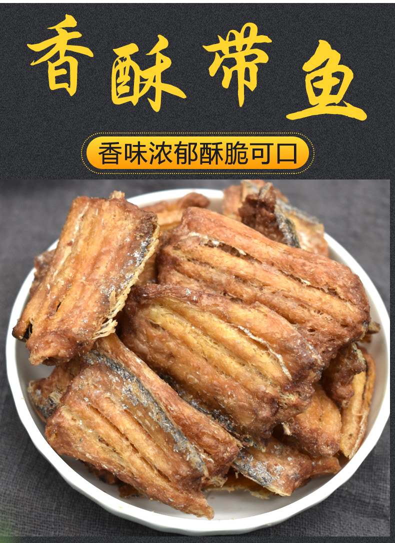香脆带鱼酥,香酥带鱼,18袋组合,休闲海鲜零食,色泽金黄,脆而不硬,严苛烘烤工艺制作,保留鲜味,酥脆爽口,每一口都是大海的味道M