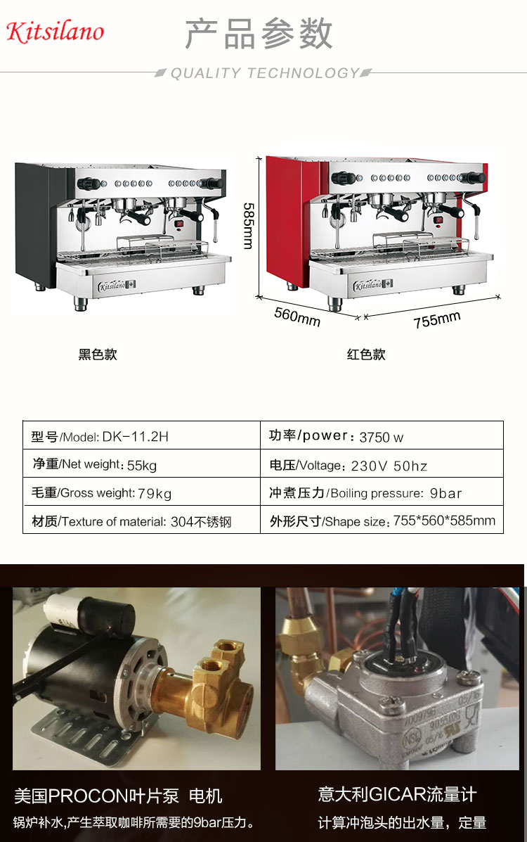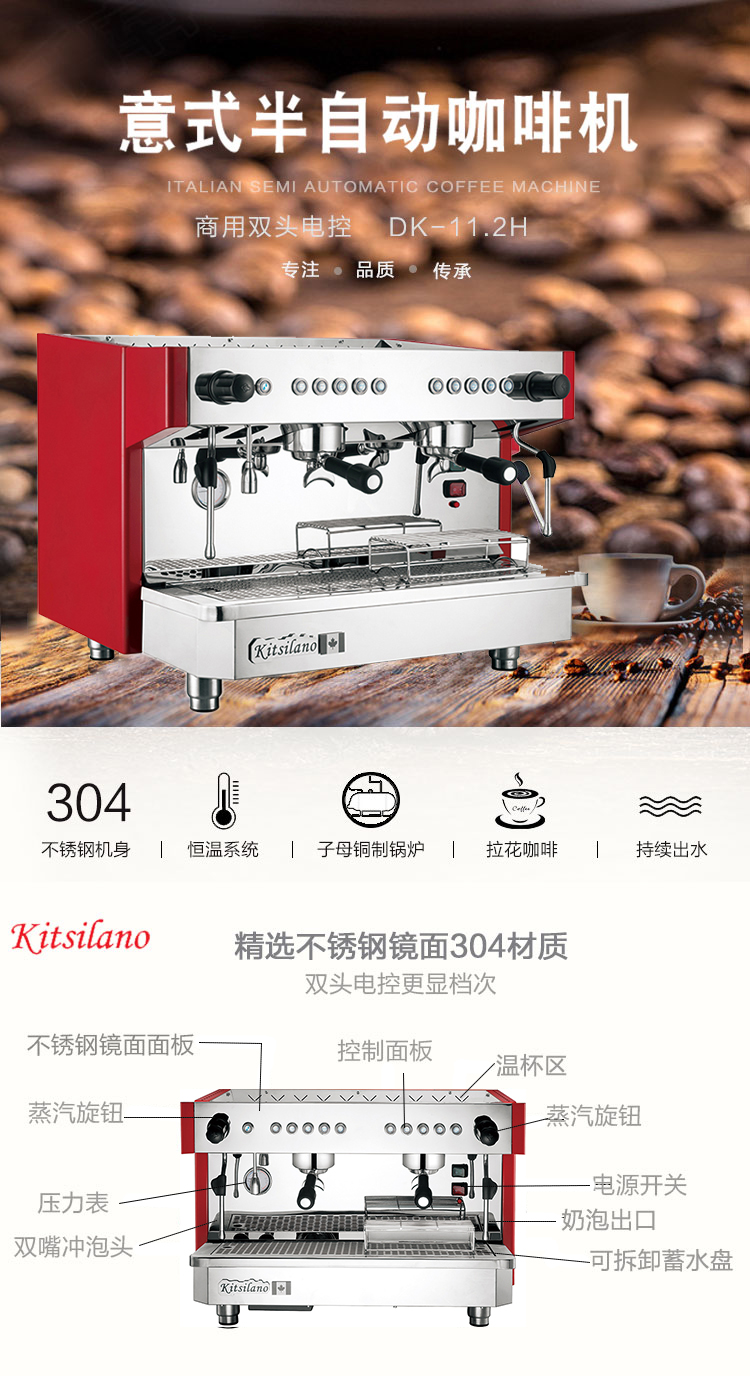 卡茜兰诺DK-11.2H意式商用咖啡机半自动双头蒸汽电控高杯专业拉花