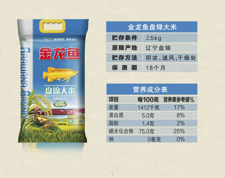 金龙鱼【盘锦大米2.5KG】东北大米 盘锦蟹田大米 大米5斤粮油米面