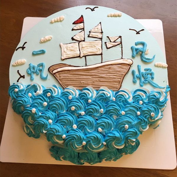 【一帆风顺】8英寸手绘鲜果蛋糕