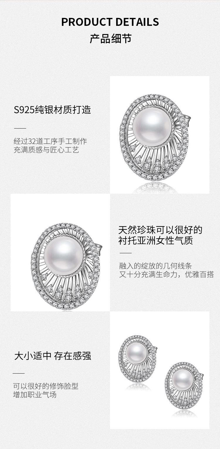 Retro Chic意大利复古时尚首饰 黛安娜白月耳钉