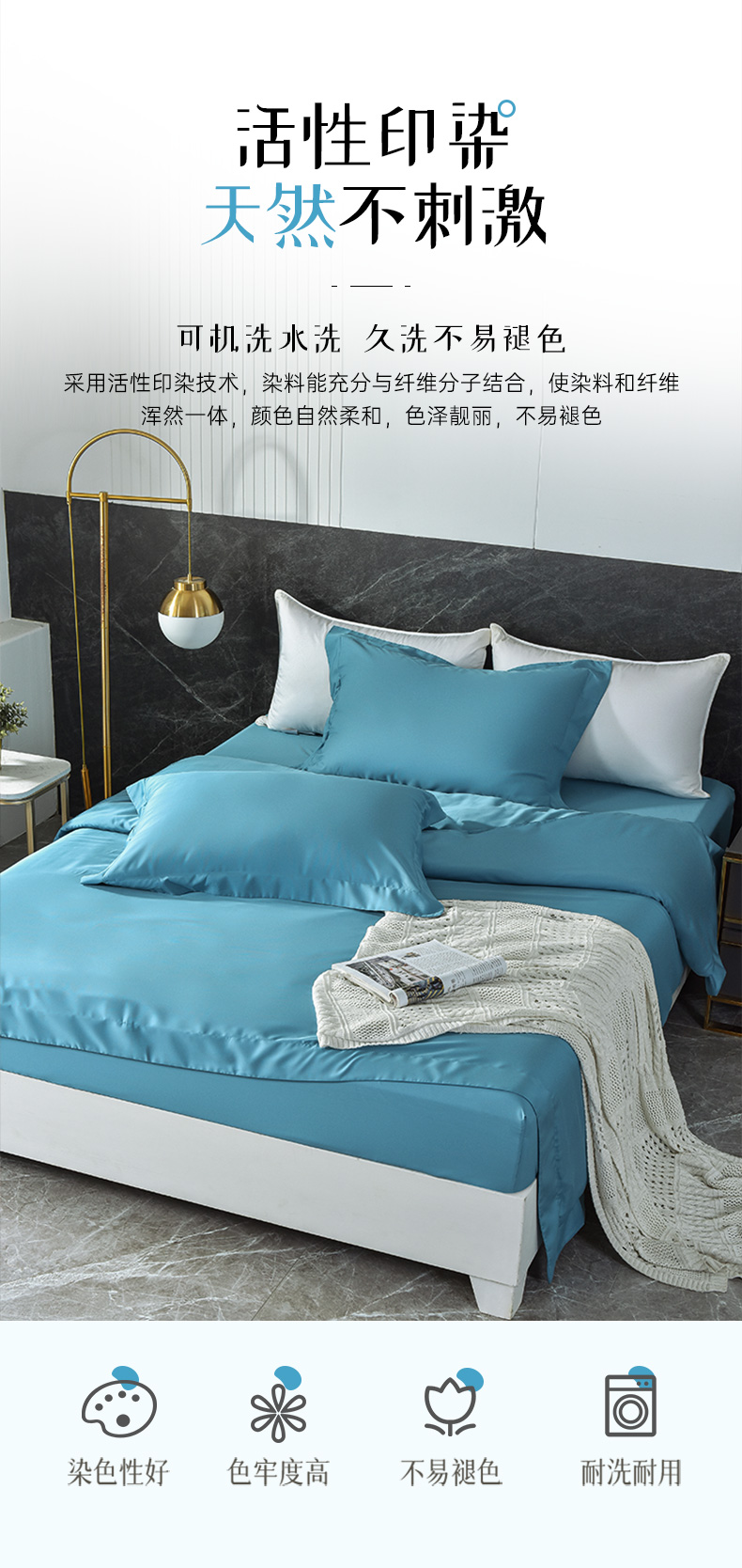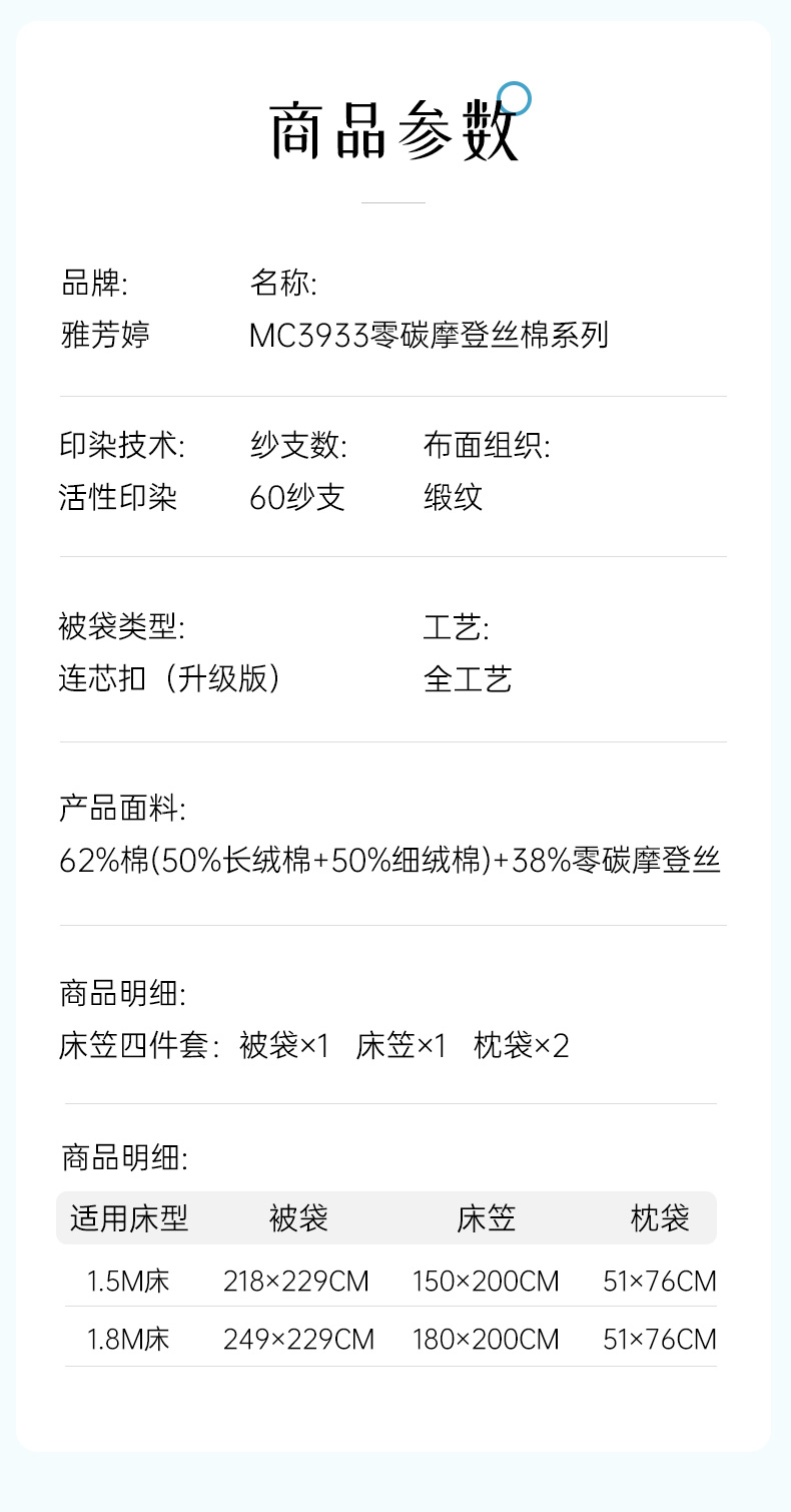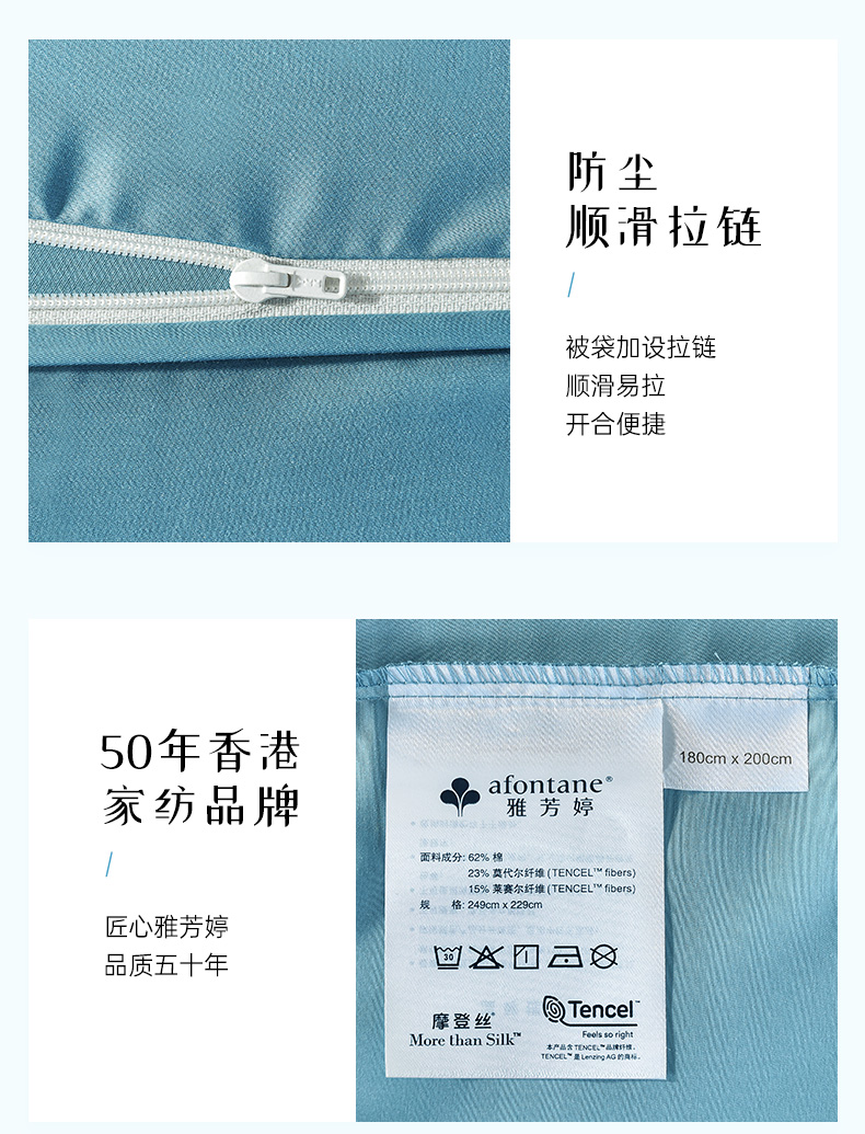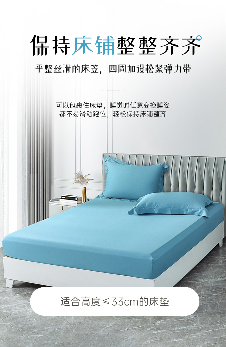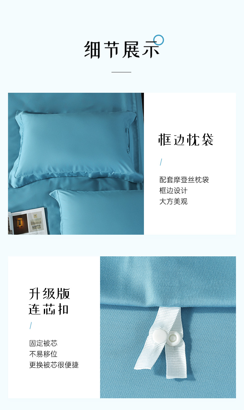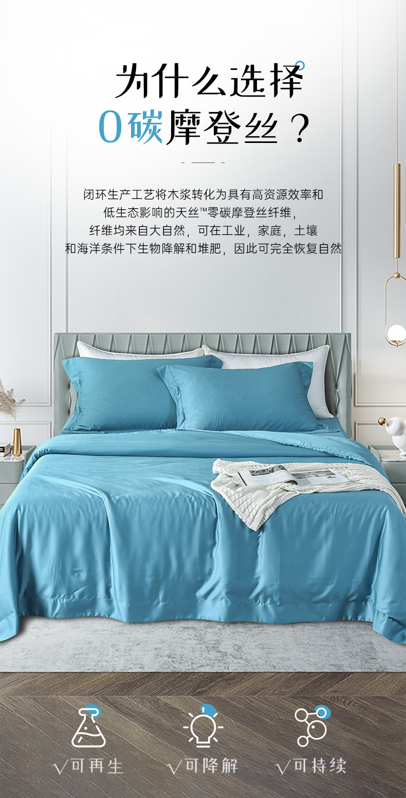 雅芳婷60S零碳摩登丝棉系列简约透气蓝色纯色床品被袋床笠四件套连芯扣家纺MC3933