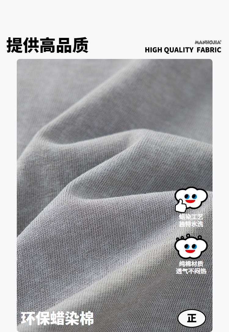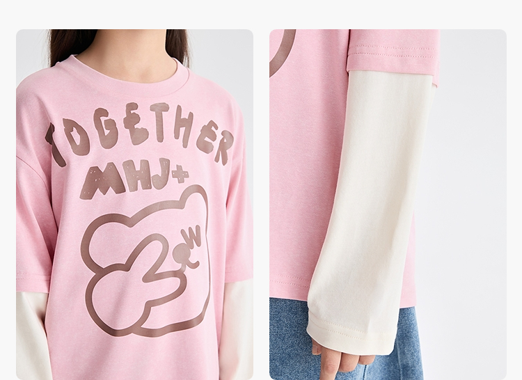 漫画家【脏脏T】复古蜡染水洗做旧宽松假两件撞色拼接T恤