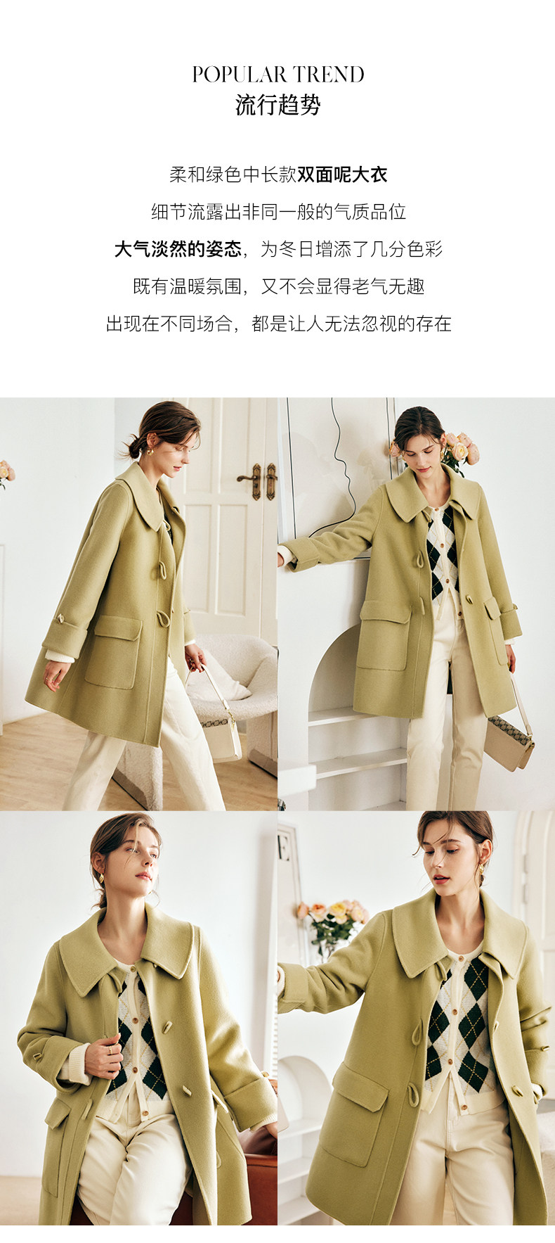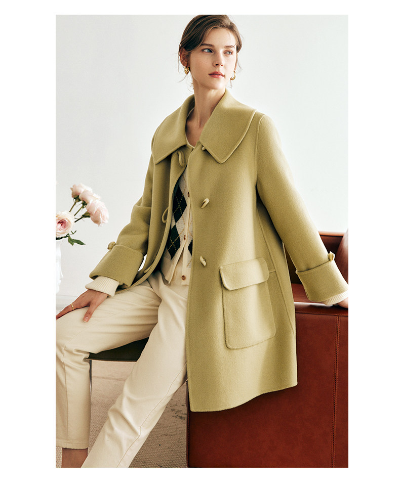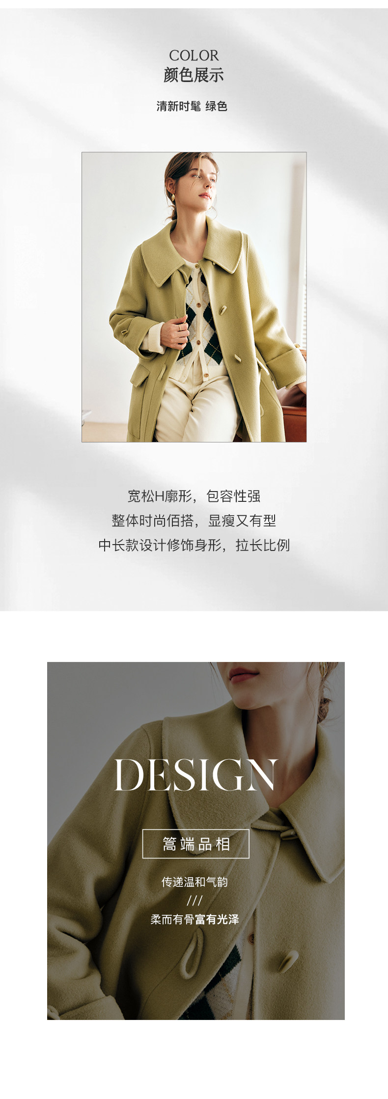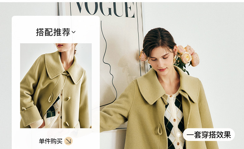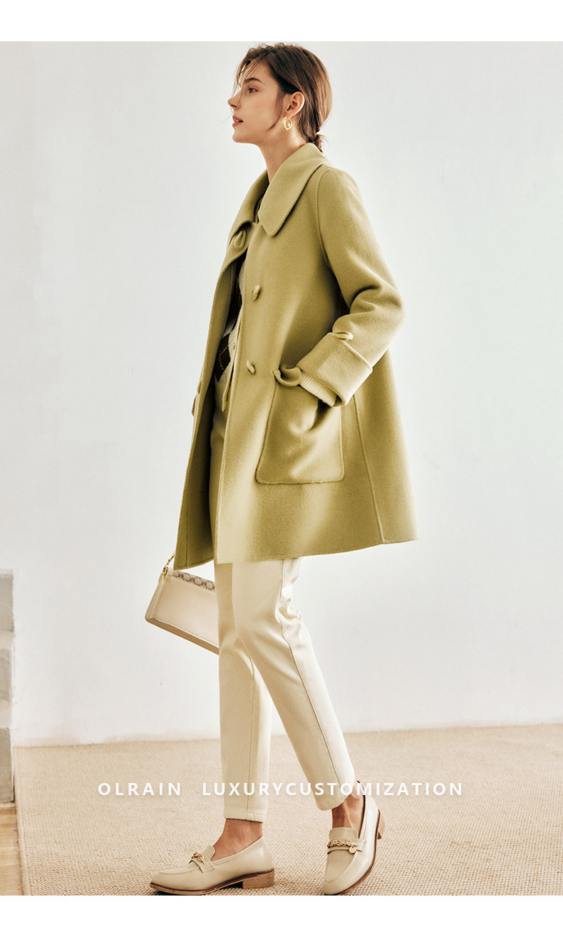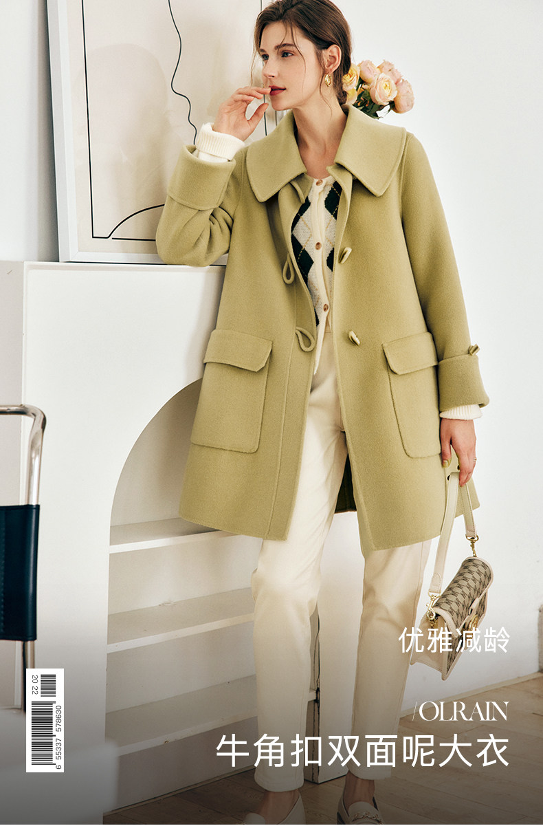 OLrain欧芮儿法式绿色毛呢外套女春2025新款韩系高级西装领大衣