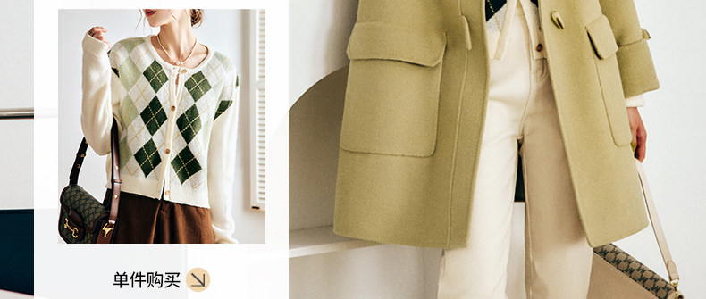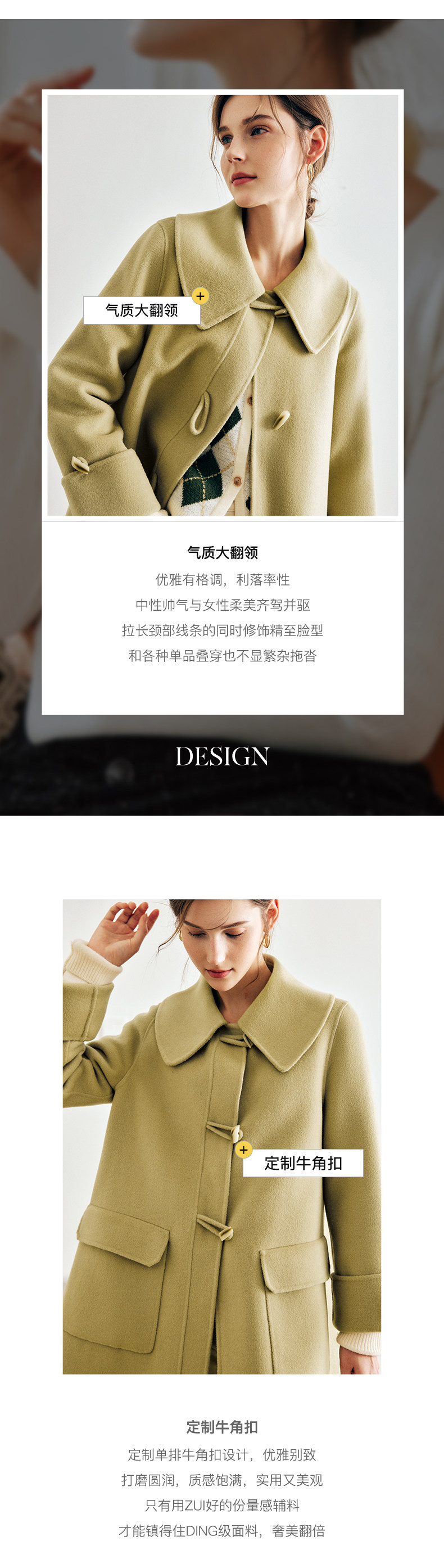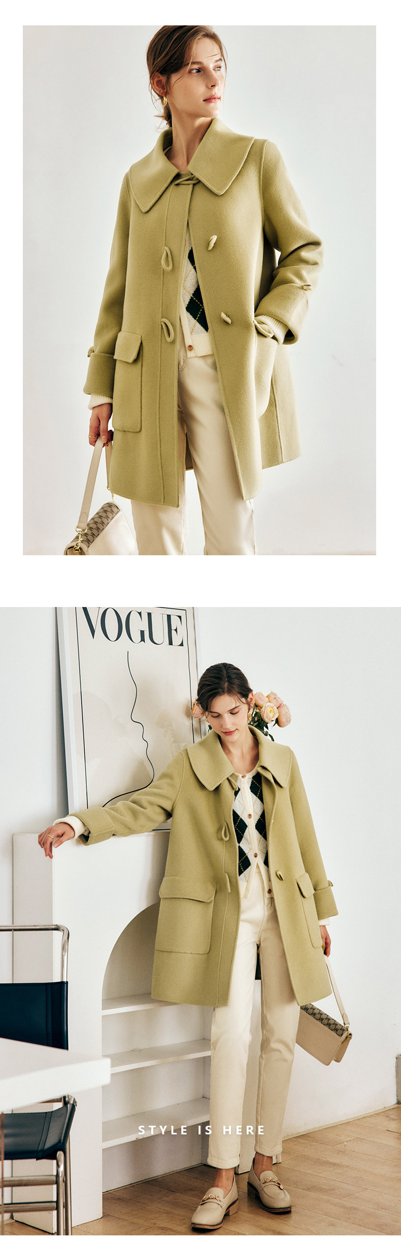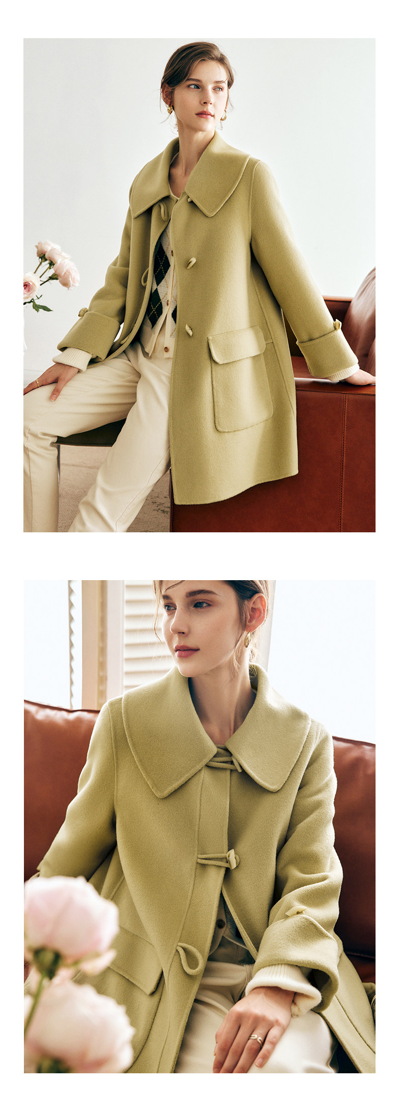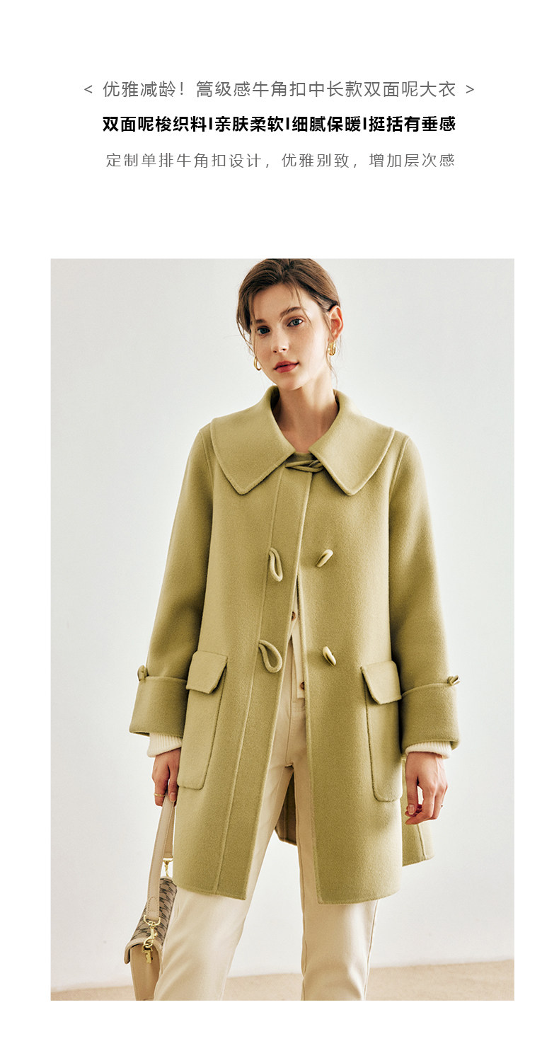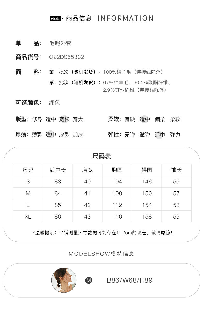 OLrain欧芮儿法式绿色毛呢外套女春2025新款韩系高级西装领大衣