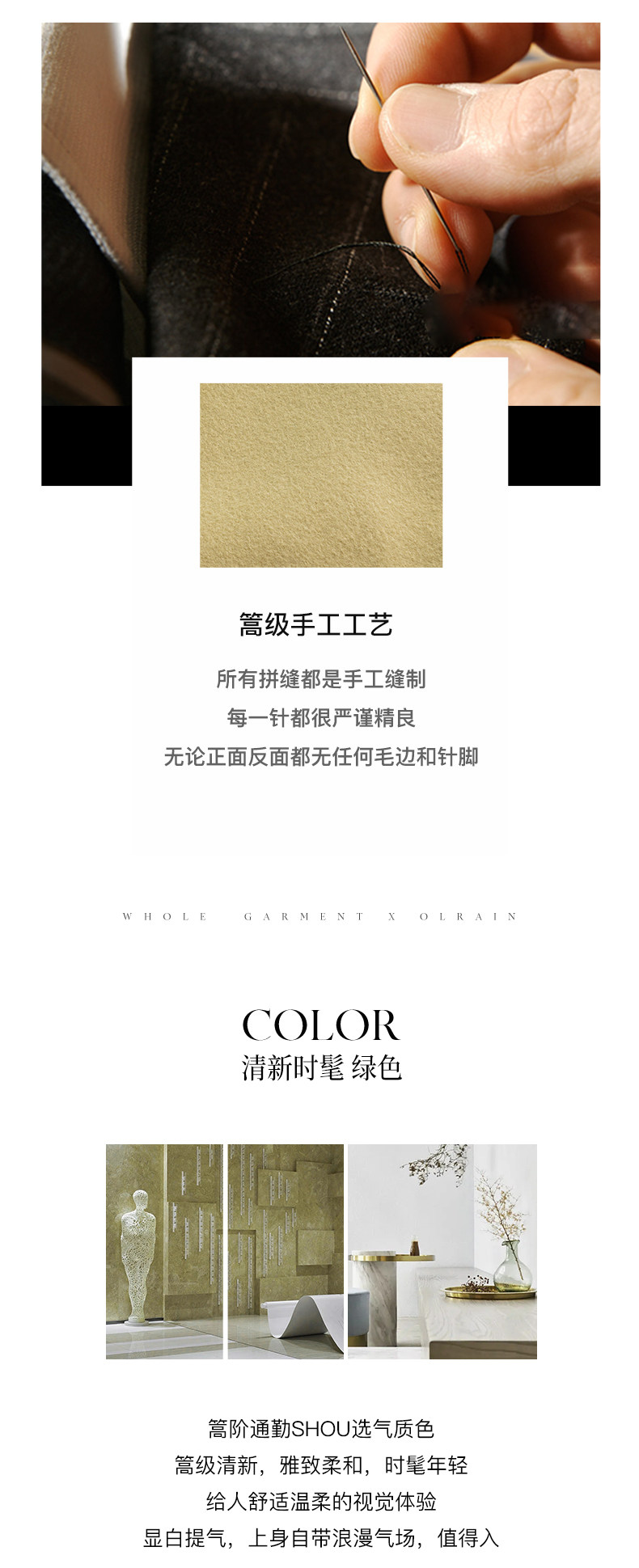 “精致”是欧芮儿olrain品牌文化的核心,欧芮儿认为,精致的女人,不但要外在动人,更要内在迷人,内外兼修,有魅力、有气质、有内涵,自信而不自傲,优雅而不矫揉,自有万种风情而不轻浮,更不故作矜持。