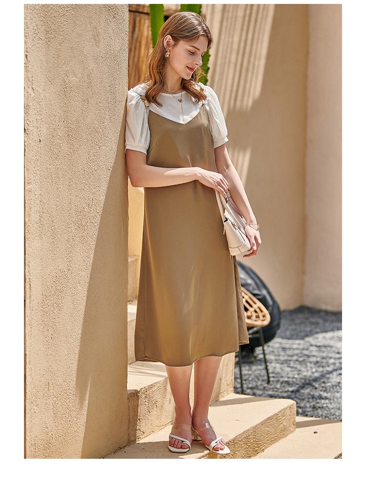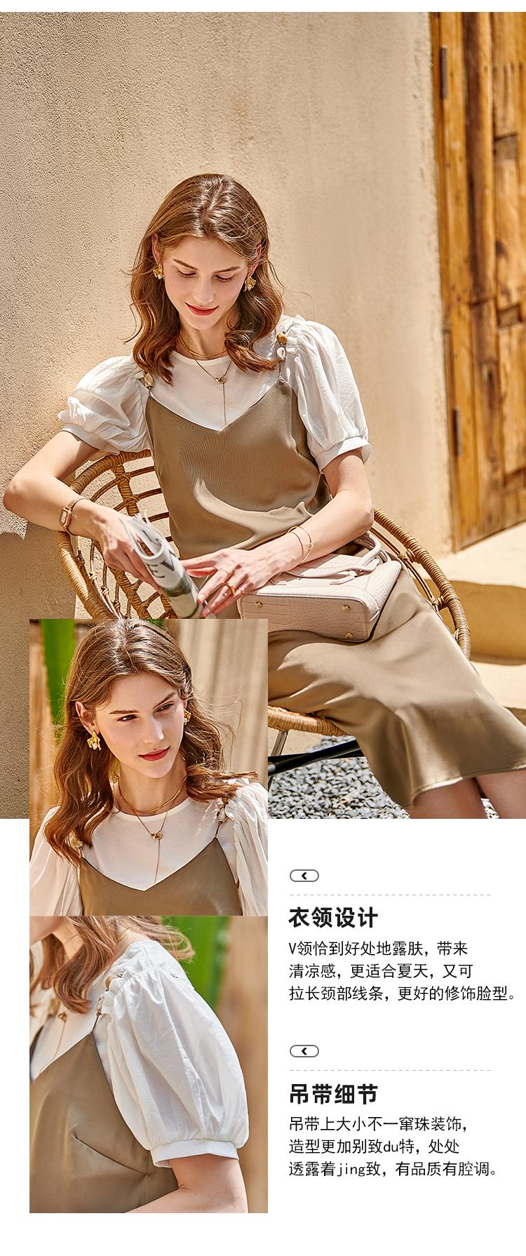 欧芮儿无袖吊带连衣裙女气质显瘦收腰中长款A字裙ins